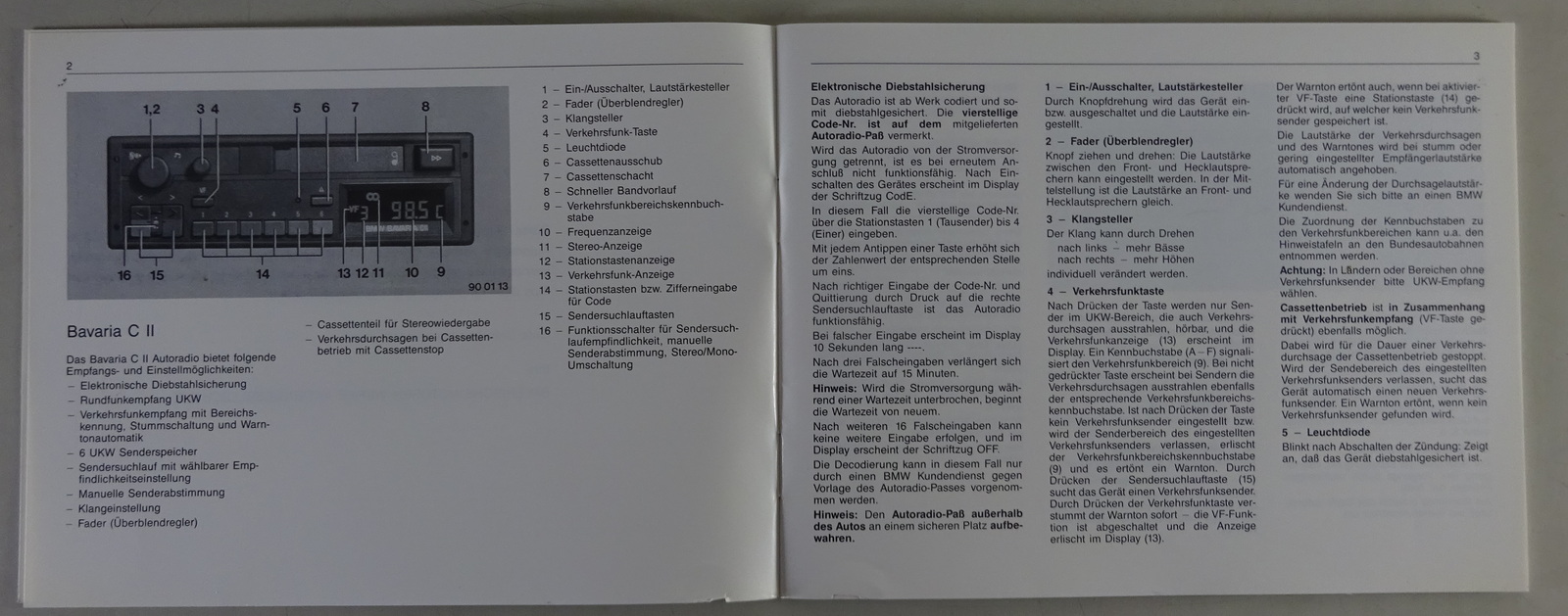 Betriebsanleitung BMW Autoradio Bavaria C Reverse II Mehrsprachig Stand 07/1989
