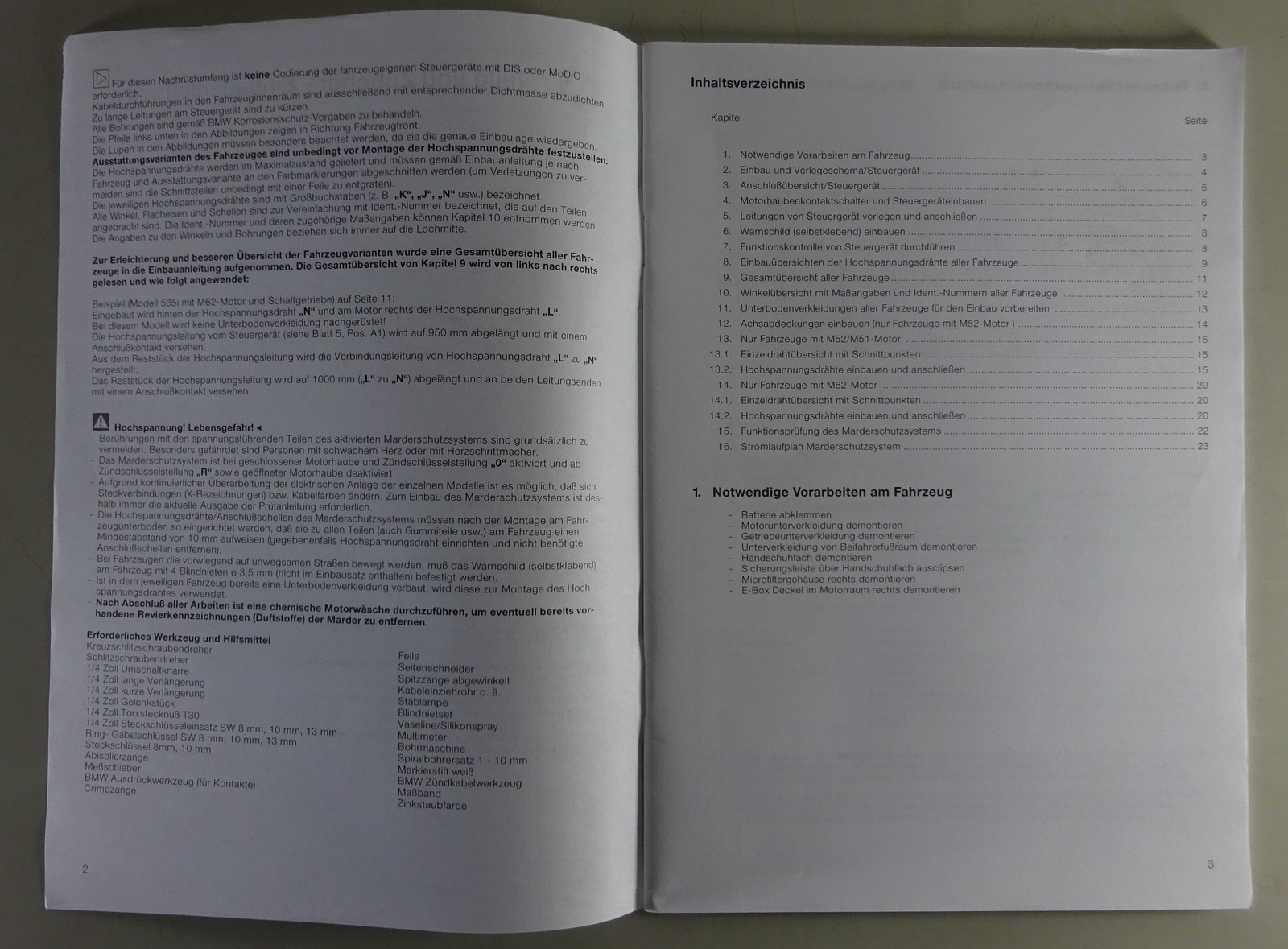 Einbauanleitung BMW Marderschutzsystem für E39 Teile und Zubehör Stand 06/1998