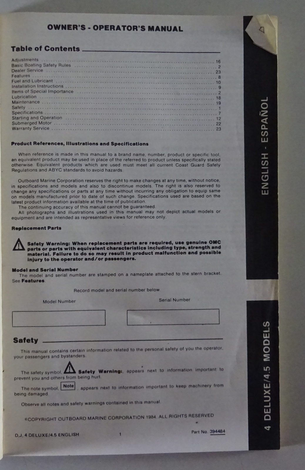 Betriebsanleitung / Owner´s Manual | Johnson Bootsmotor 4 Deluxe / 4.5 | 1984