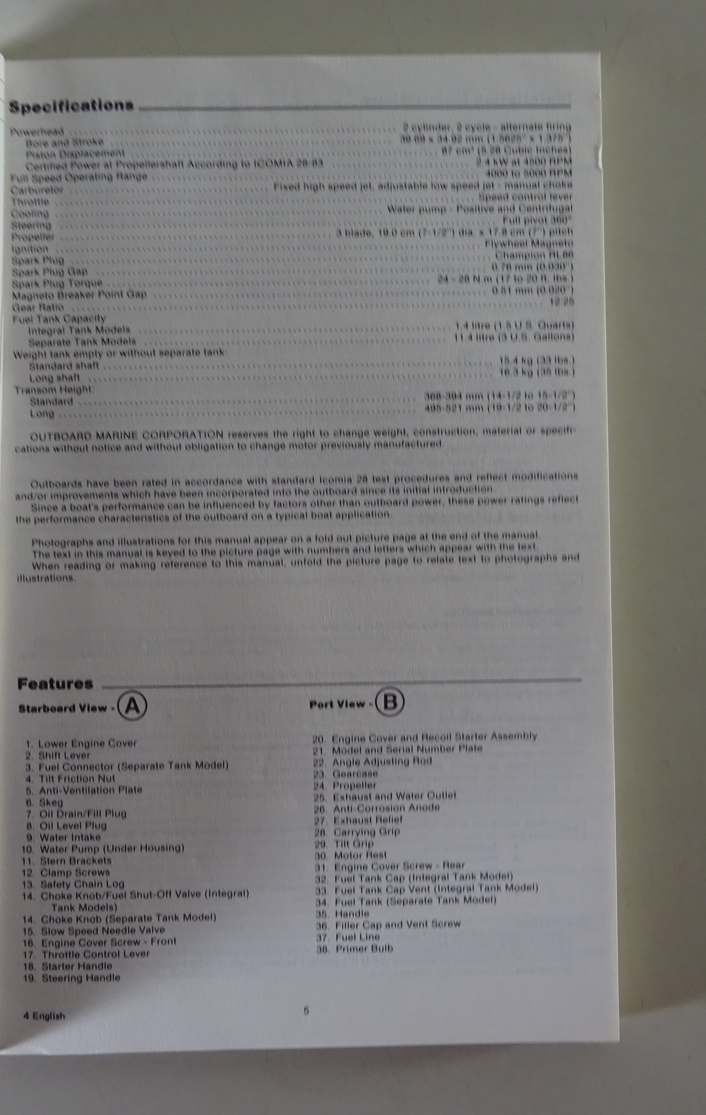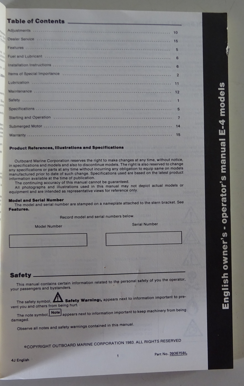 Betriebsanleitung/Owner´s Manual Johnson Bootsmotor E-4 Models | ENG/FRA | 1983