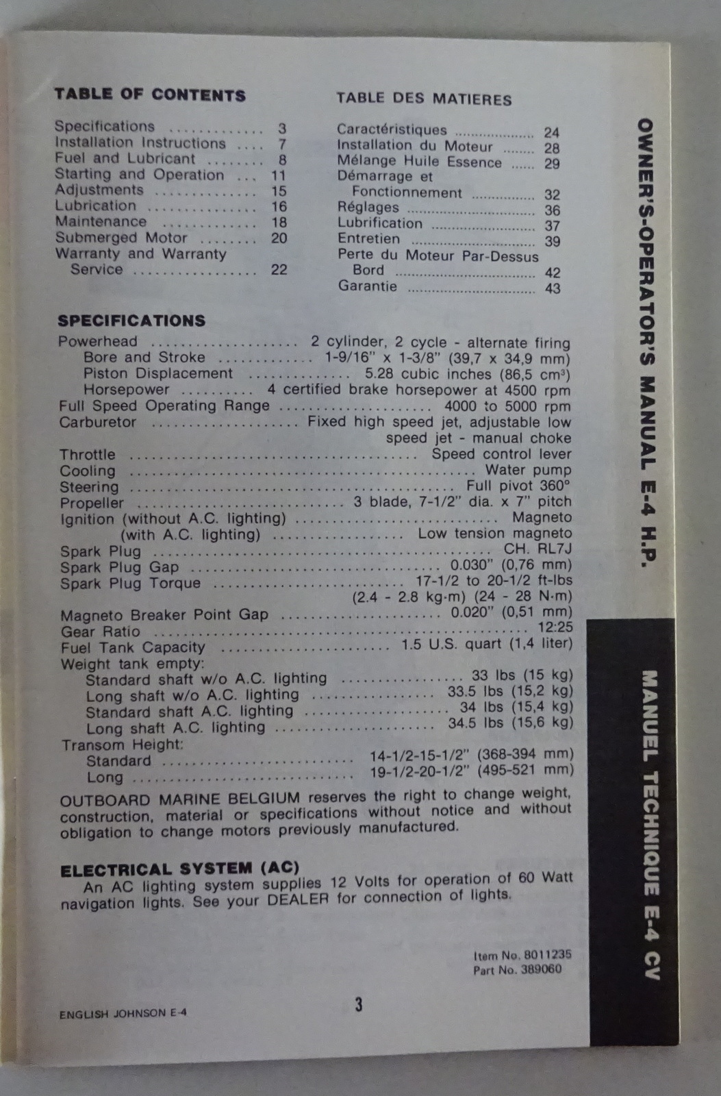 Betriebsanleitung / Owner´s Manual | Johnson Bootsmotor 2 Models | ENG/FRA 1983