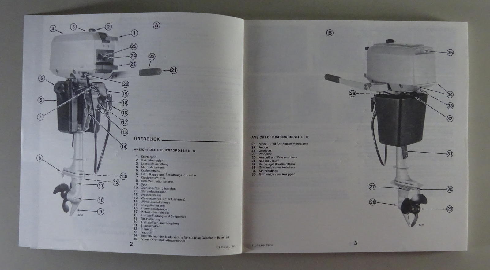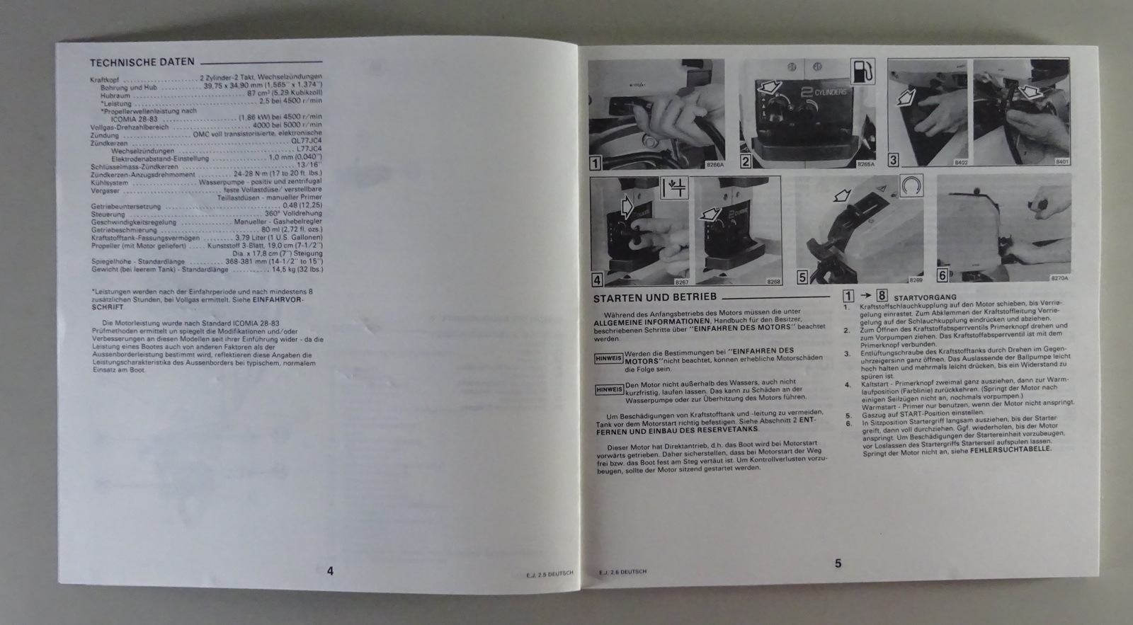 Betriebsanleitung / Bedienungsanleitung Johnson Bootsmotor 2,5 Ultra Stand 1986