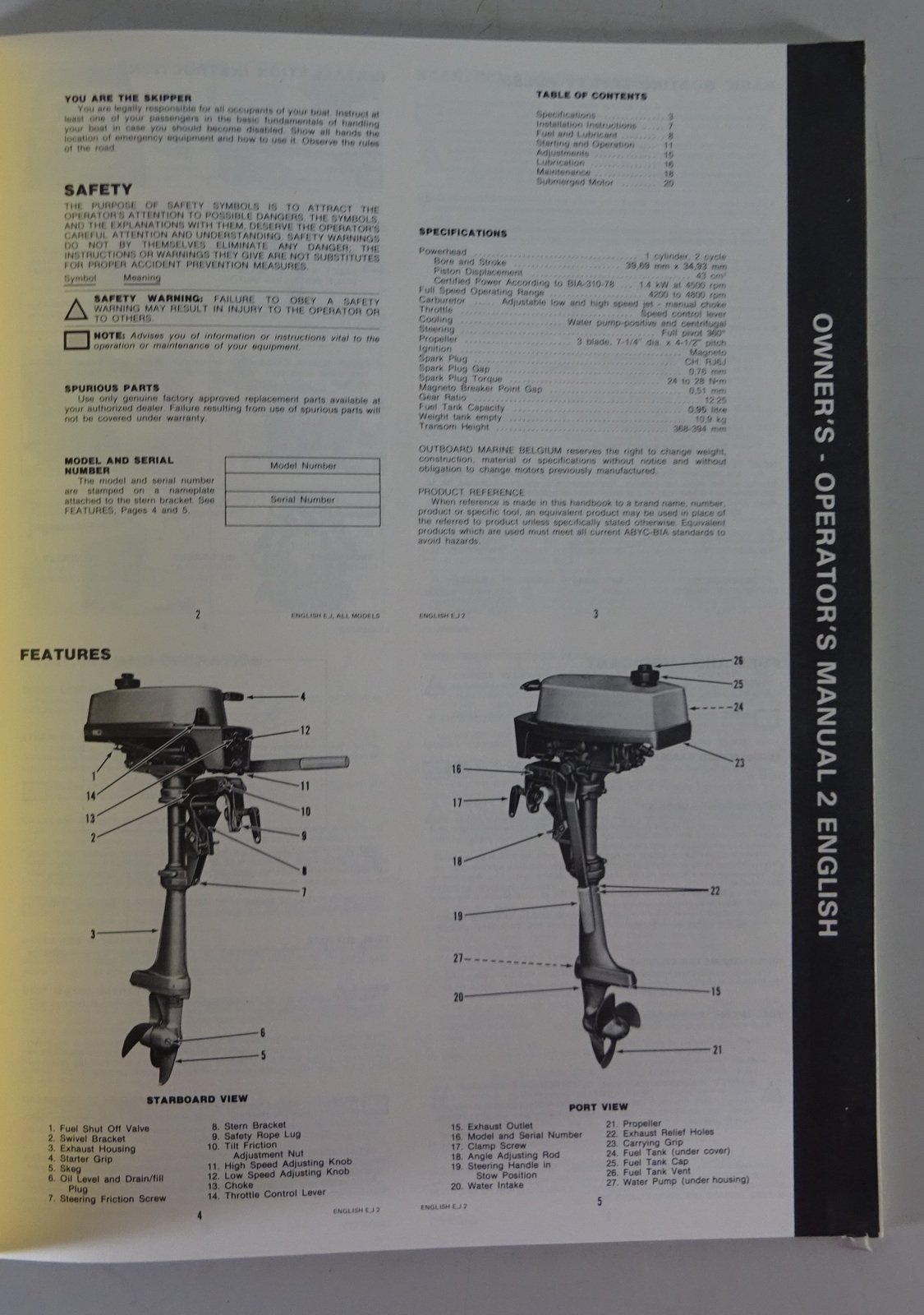 Betriebsanleitung / Owner´s Manual | Johnson Bootsmotor Outboards | Stand 1980