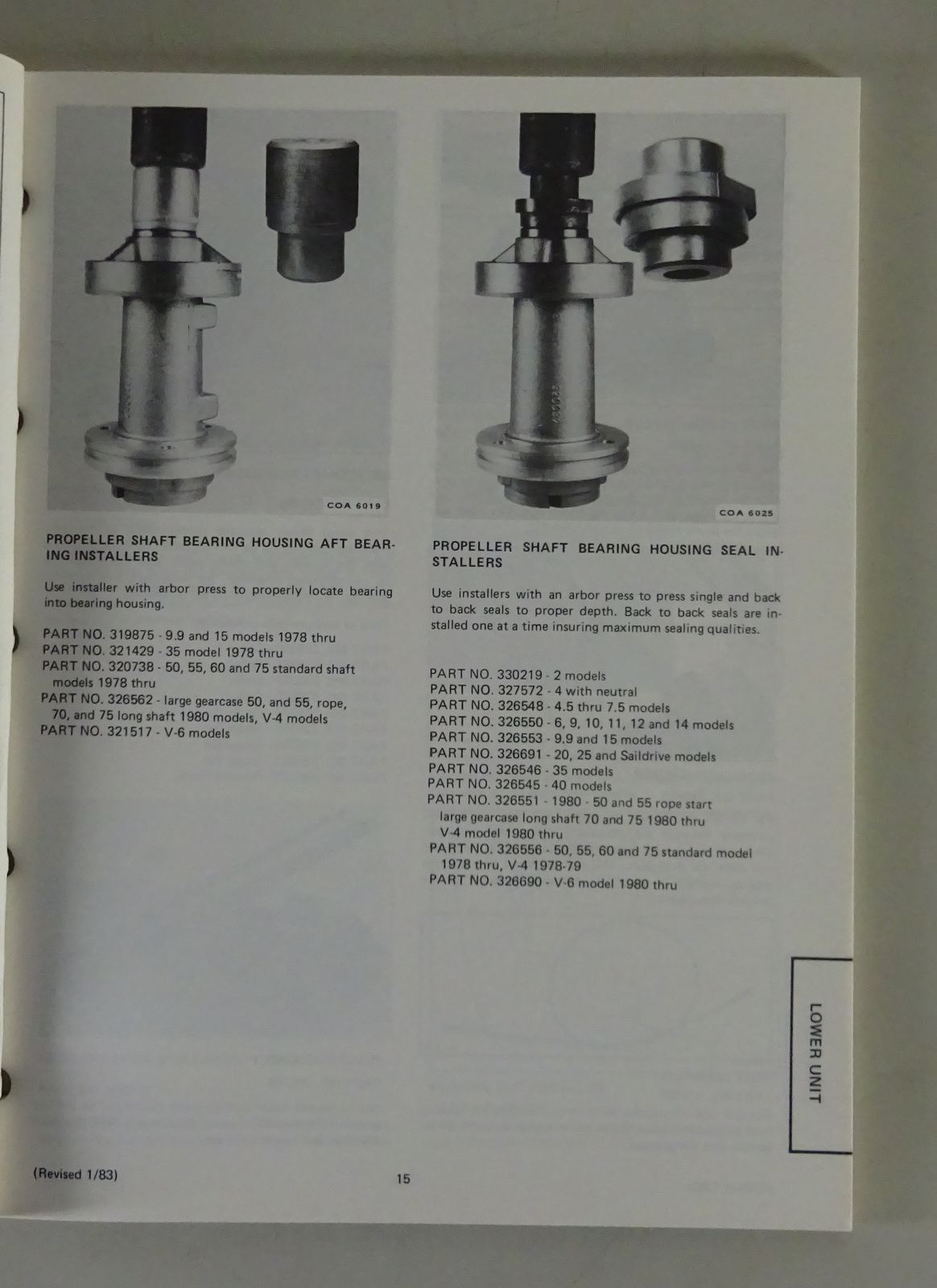 OMC Bootsmotoren Servicewerkzeuge / Spezialwerkzeuge Modelljahr 1983