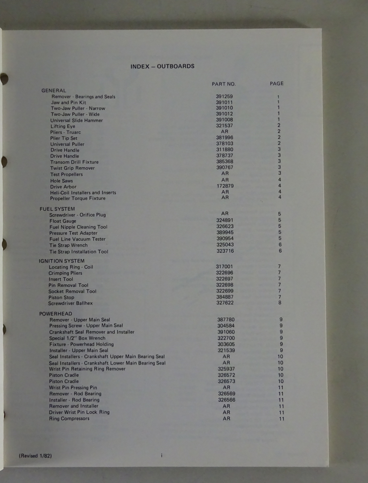 Spezialwerkzeug Katalog OMC Bootsmotoren Servicewerkzeuge Modelljahr 1983