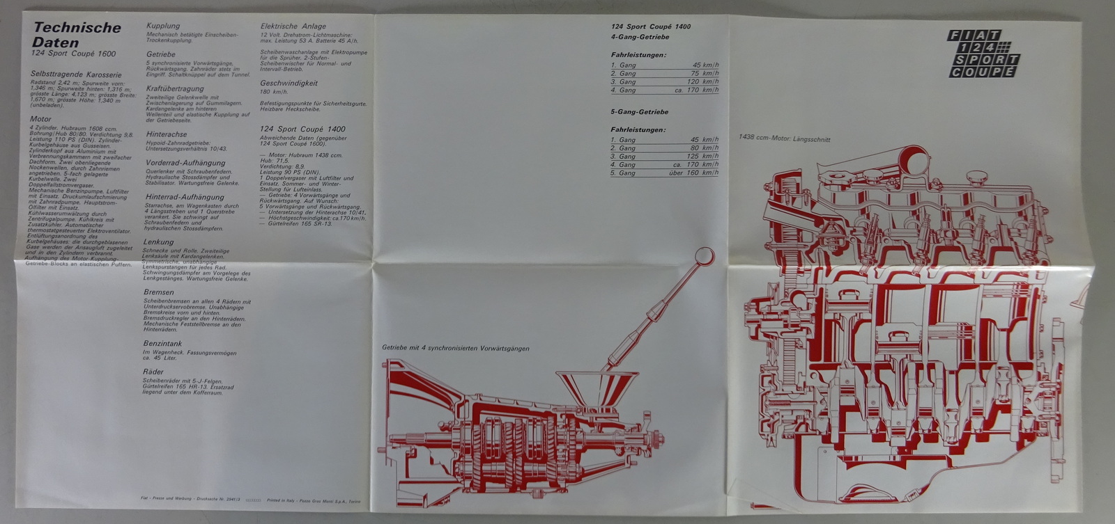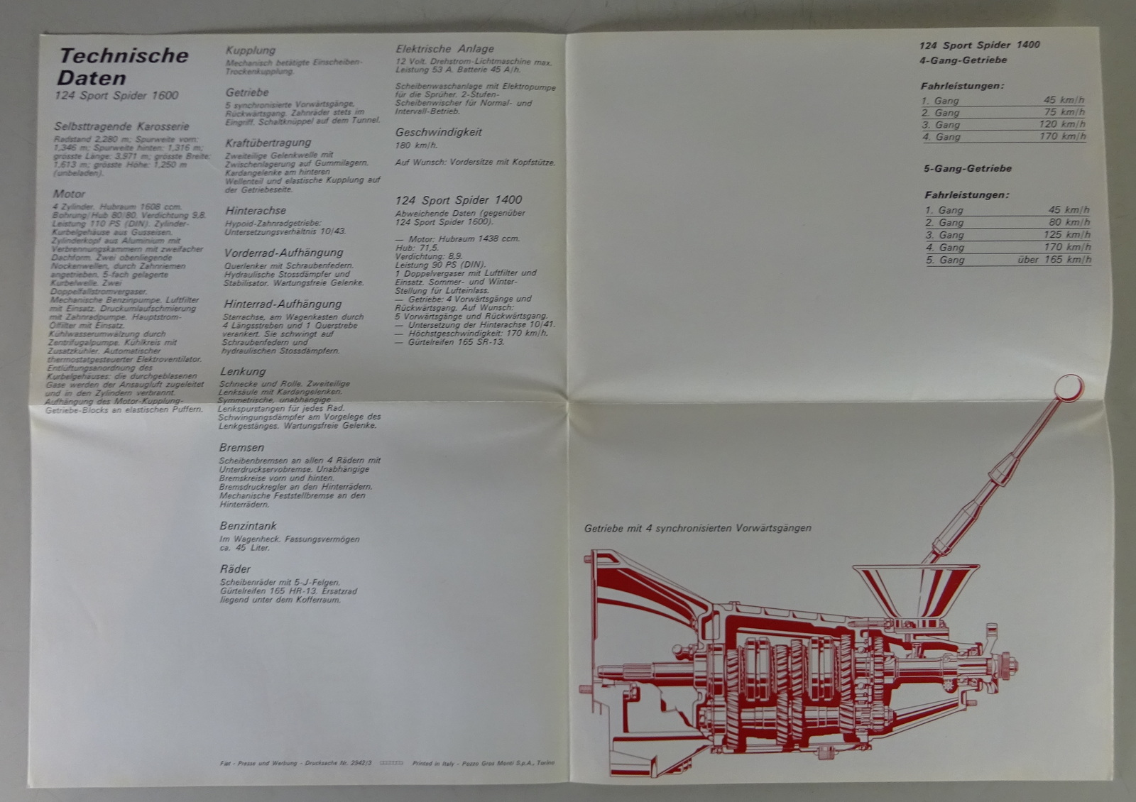 Prospektmappe Fiat 124 Sport Spider 1400 + 1600