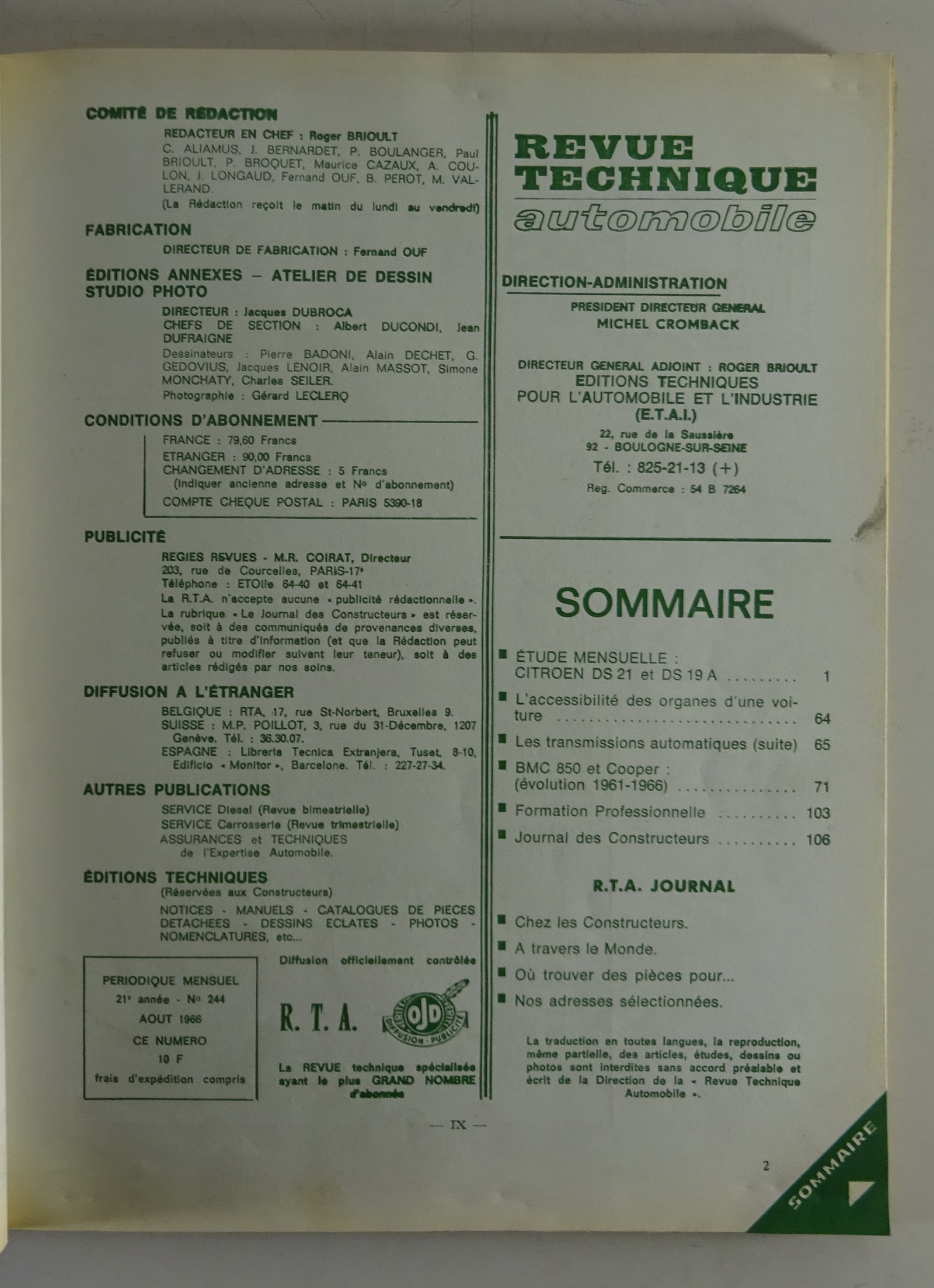 Reparaturanleitung Revue Technique Citroen DS 21 / DS 19 Stand 08/1966