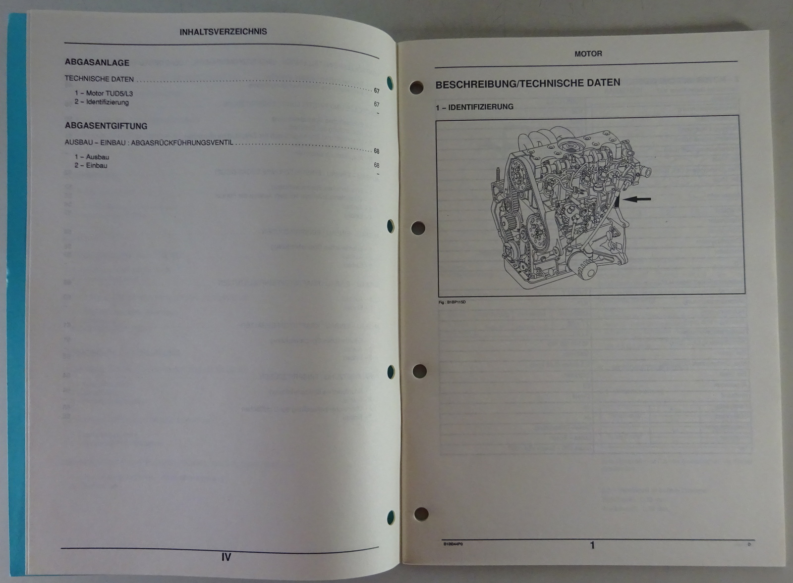 Inhalt: Technische Daten, Beschreibung, Einbau / Ausbau, Motor, Zylinderkopf, Motorsteuerung, Schmiersystem, Kühlsystem, Versorgung / Aufladung,  Abgasanlage, Entgiftung, Nockenwelle, Antriebsriemen, Einspritzpumpe, Steuerzahnriemen etc.