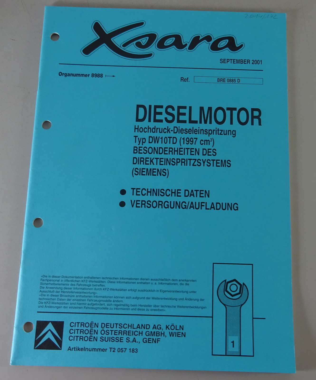 Werkstatthandbuch Citroen Xsara Dieselmotor DW10TD (1997ccm) Stand 09/2001