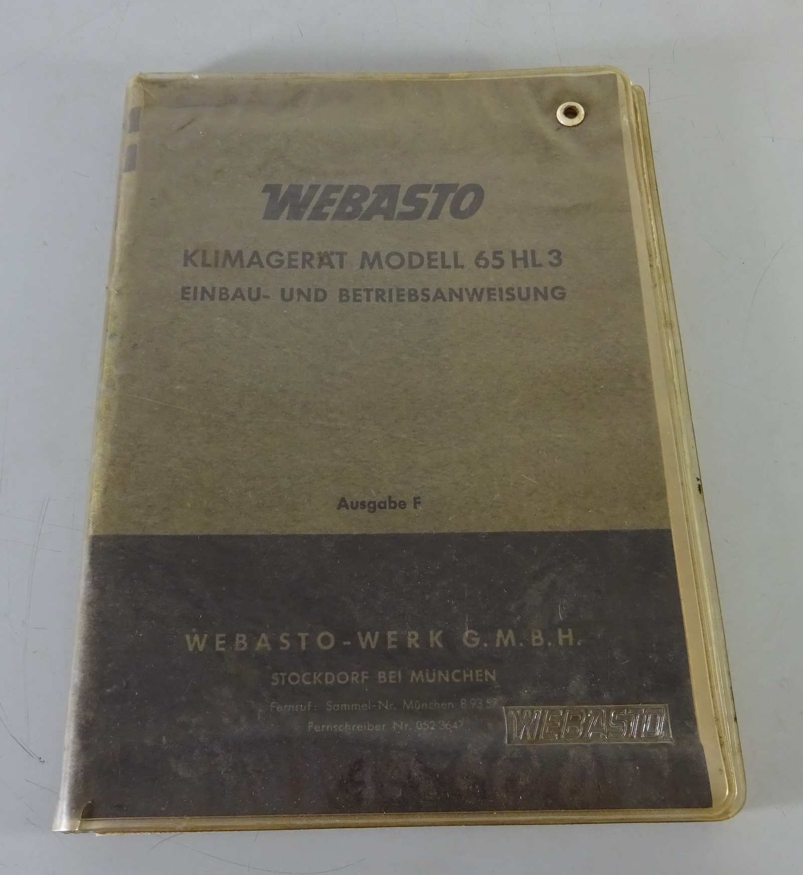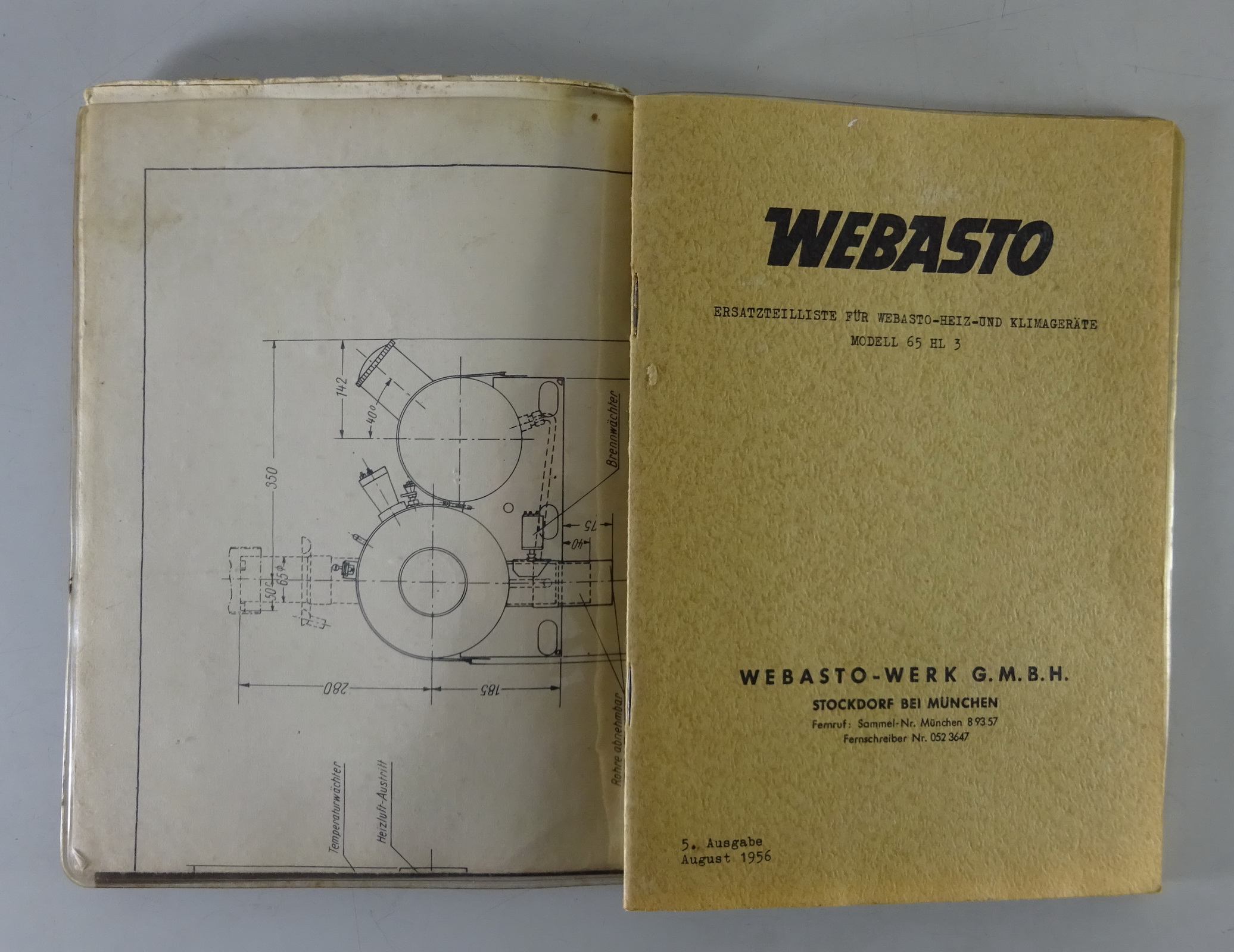 Betriebsanleitung + Teilekatalog Webasto Klimaanlage Modell 65 HL 3 Stand 9/1956