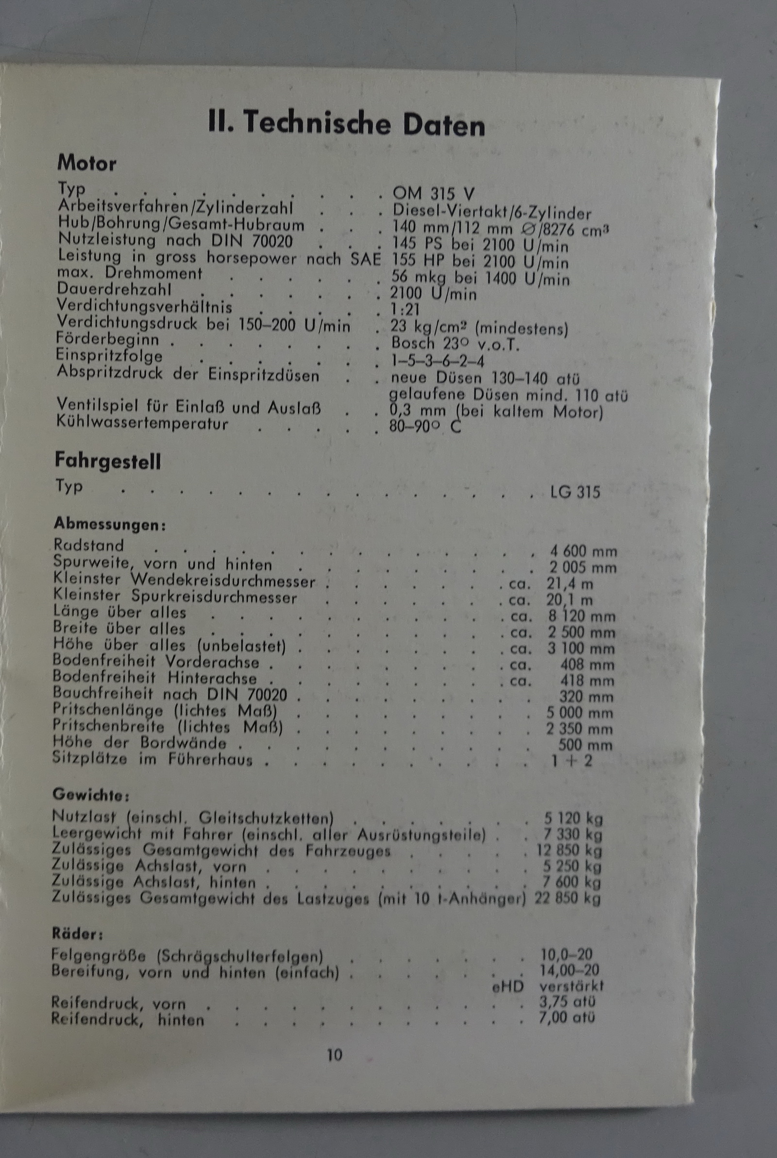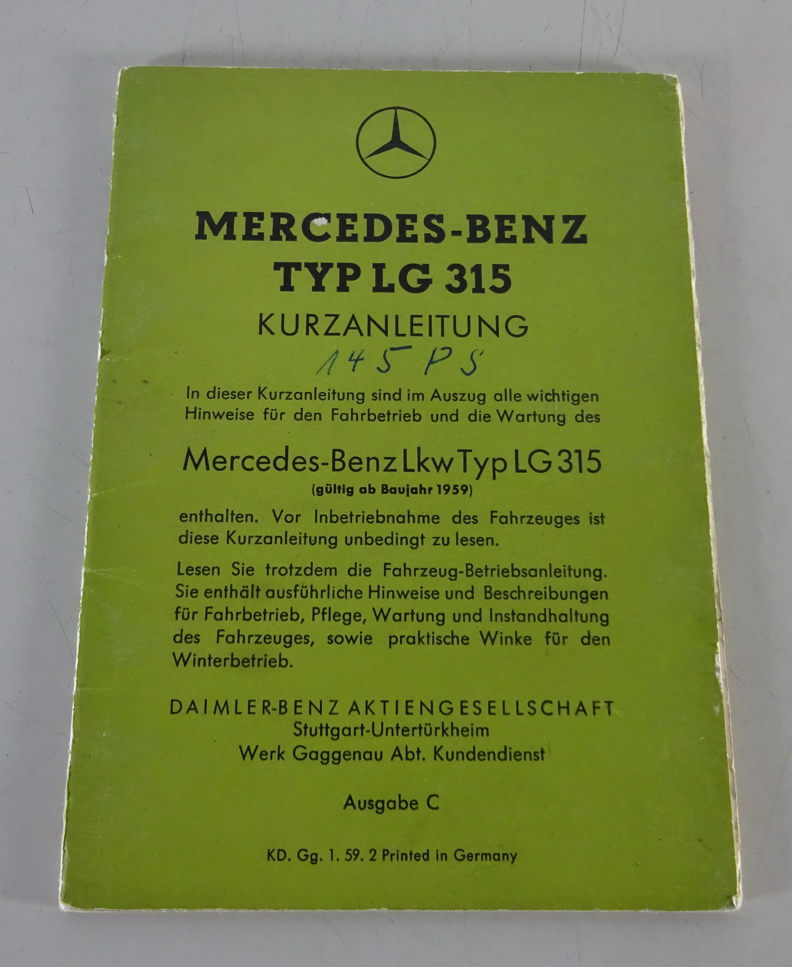 Kurzanleitung / Handbuch Mercedes-Benz LKW LG 315 ab 1959 Stand 01/1959