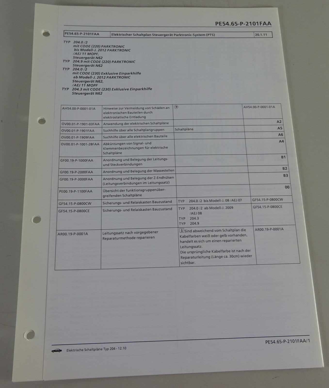 Produktinformationen "Schaltplan Mercedes W204 Steuergerät Parktronic-System (PTS) | Typ 204 | 12/2010"