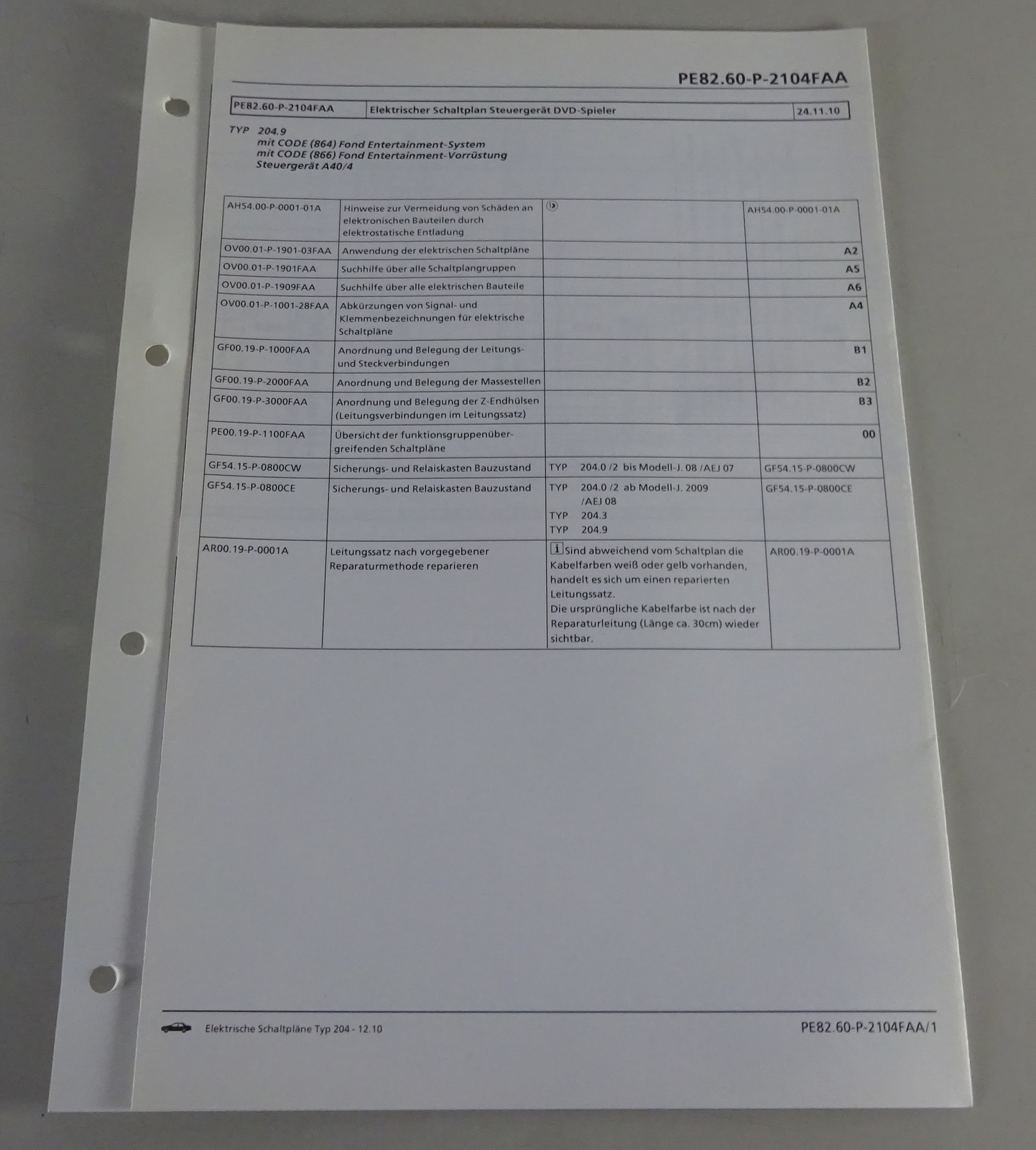 Produktinformationen "Schaltplan Mercedes-Benz W204 Steuergerät DVD-Spieler | Typ 204 | Stand 12/2010"