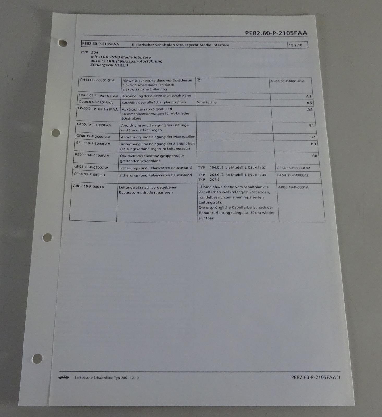 Produktinformationen "Schaltplan Mercedes-Benz W204 Steuergerät Media Interface Typ 204 Stand 12/2010"