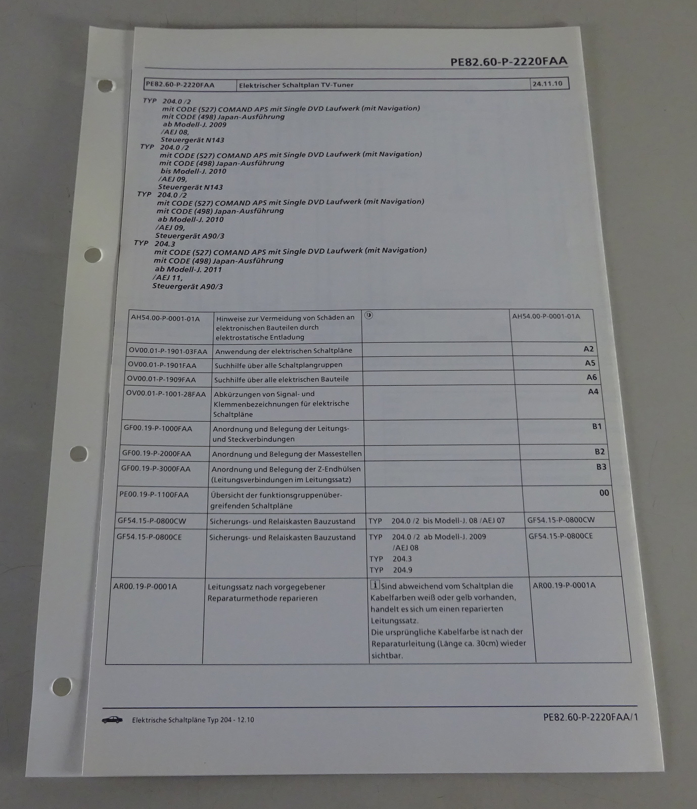 Produktinformationen "Schaltplan Mercedes-Benz W204 Steuergerät TV-Tuner | Typ 204 | Stand 12/2010"