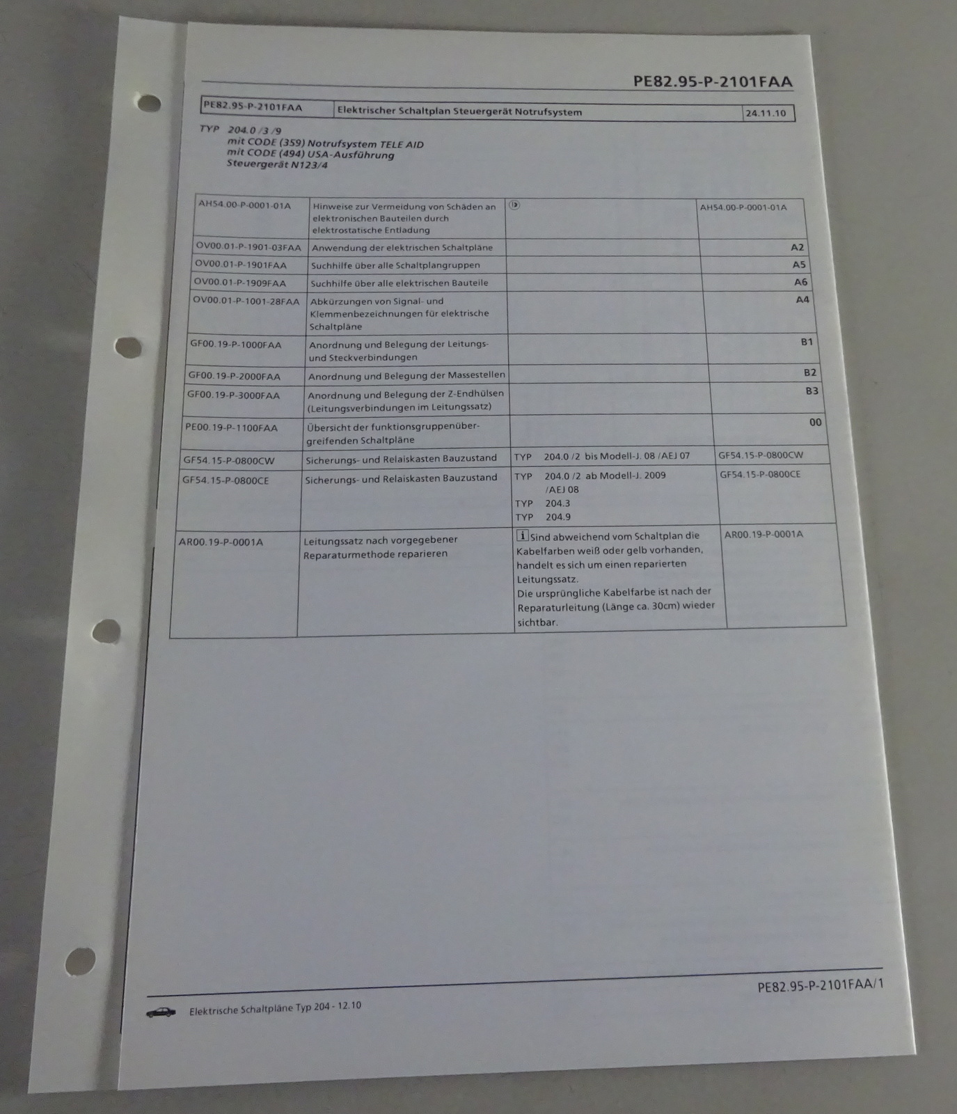 Produktinformationen "Schaltplan Mercedes-Benz W204 Notrufsystem | Typ 204 | Stand 12/2010"
