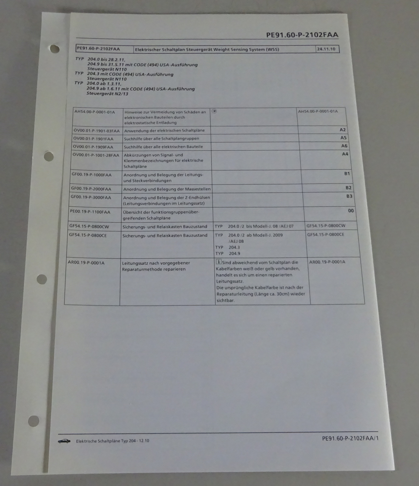 Produktinformationen "Schaltplan Mercedes-Benz W204 Weight Sensing System (WSS) | Typ 204 | 12/2010"