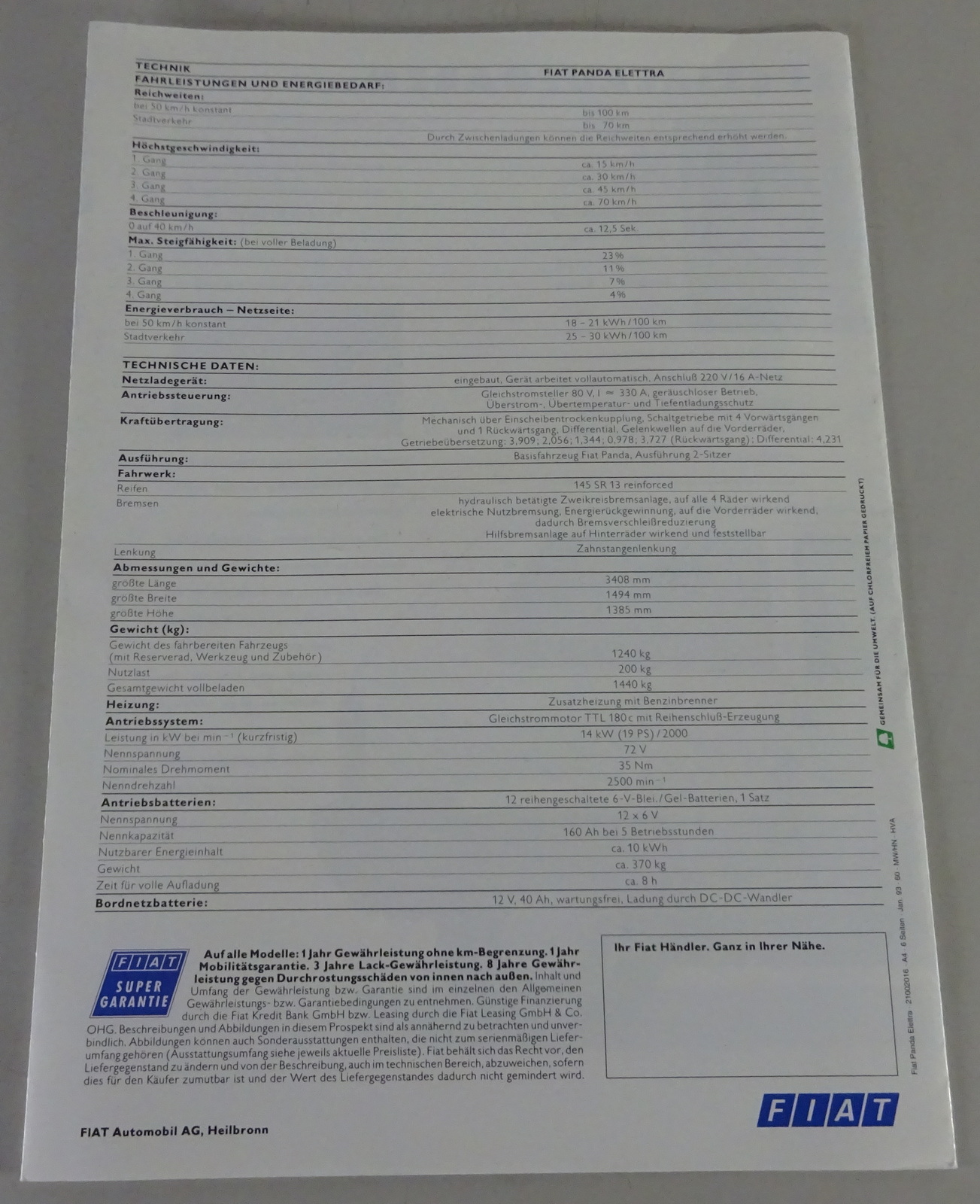 Prospekt / Broschüre original Fiat Fiat Panda Elettra Inhalt: Daten... mehr