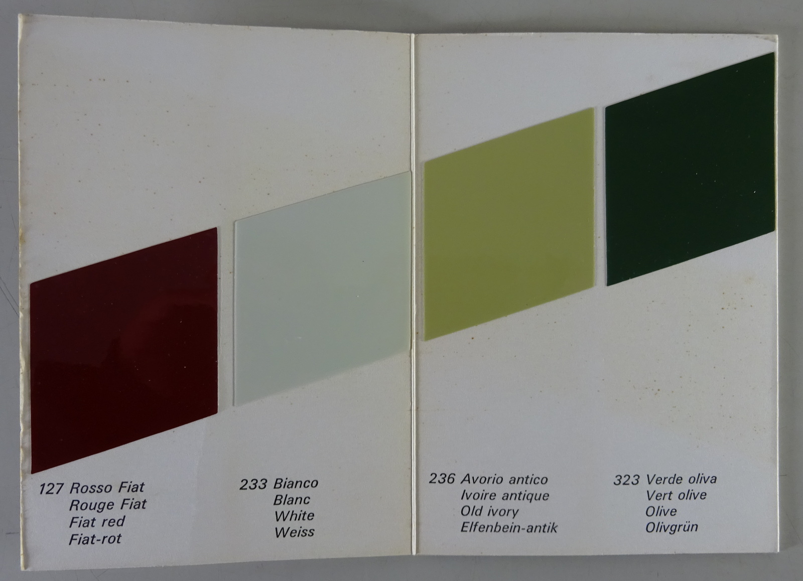 Farbkarte / Prospekt | Fiat 124 Special gamma colori | mit Händlerstempel