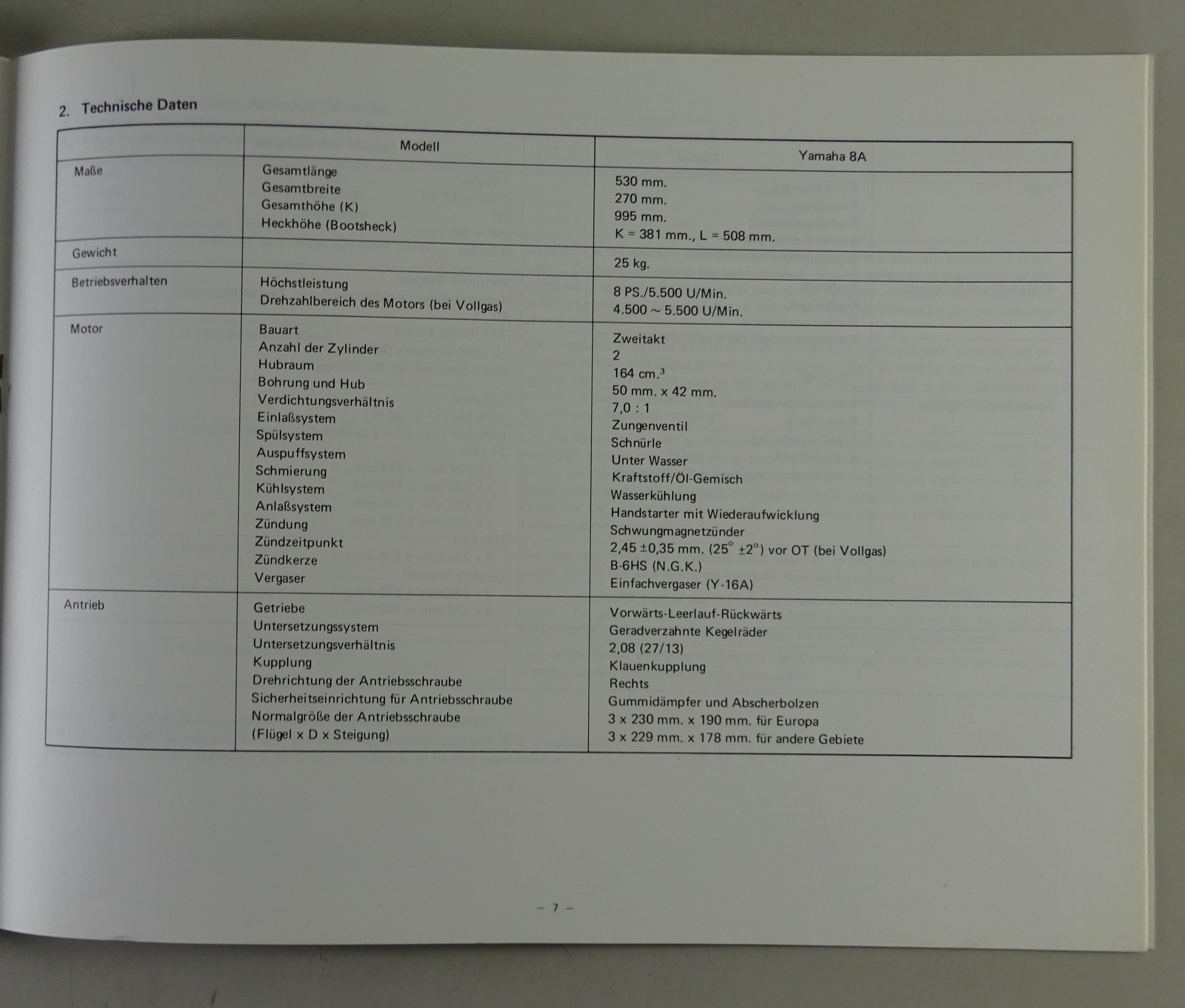 Ergänzung zur Wartungsanleitung Yamaha Außenborder 8A Stand 10/1973