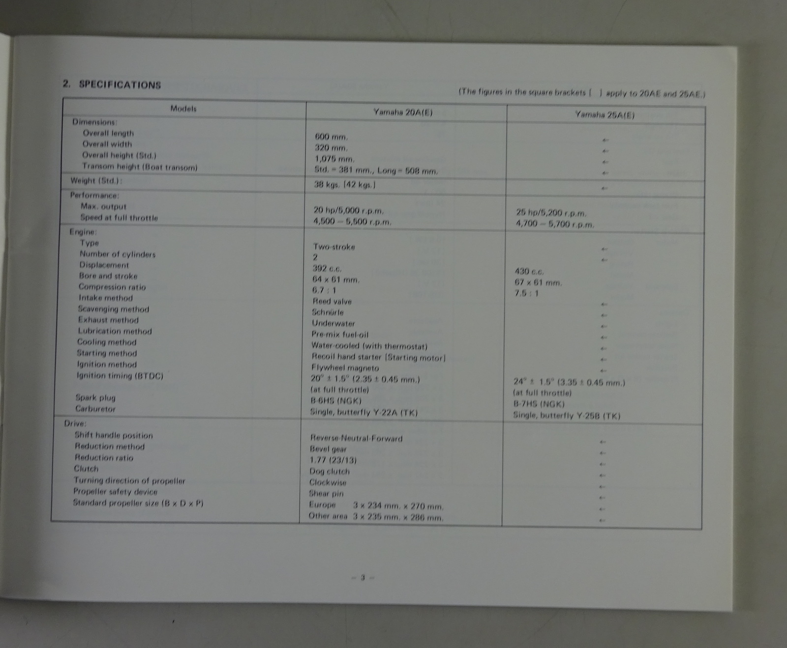 Ergänzung zur Wartungsanleitung Yamaha Außenborder 20A(E) / 25A(E) Stand 12/1973