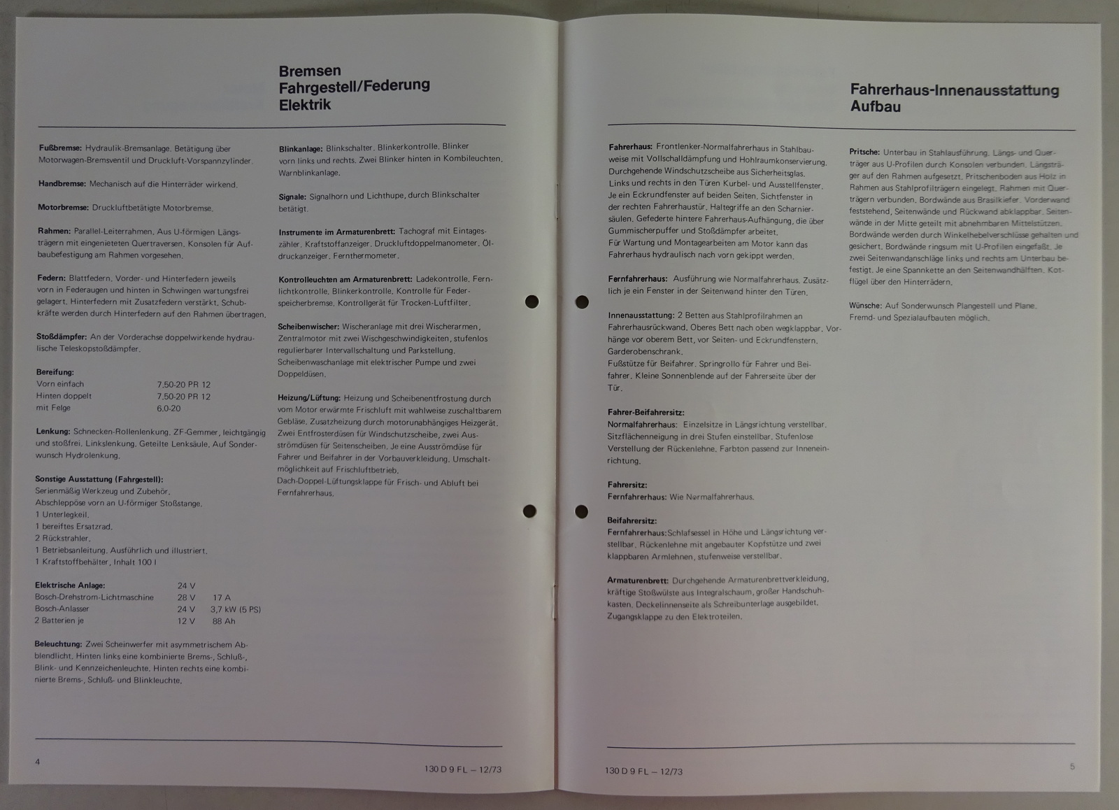 Prospekt / Broschüre Magirus-Deutz LKW 130 D 9 FL Frontlenker Stand 12/1973