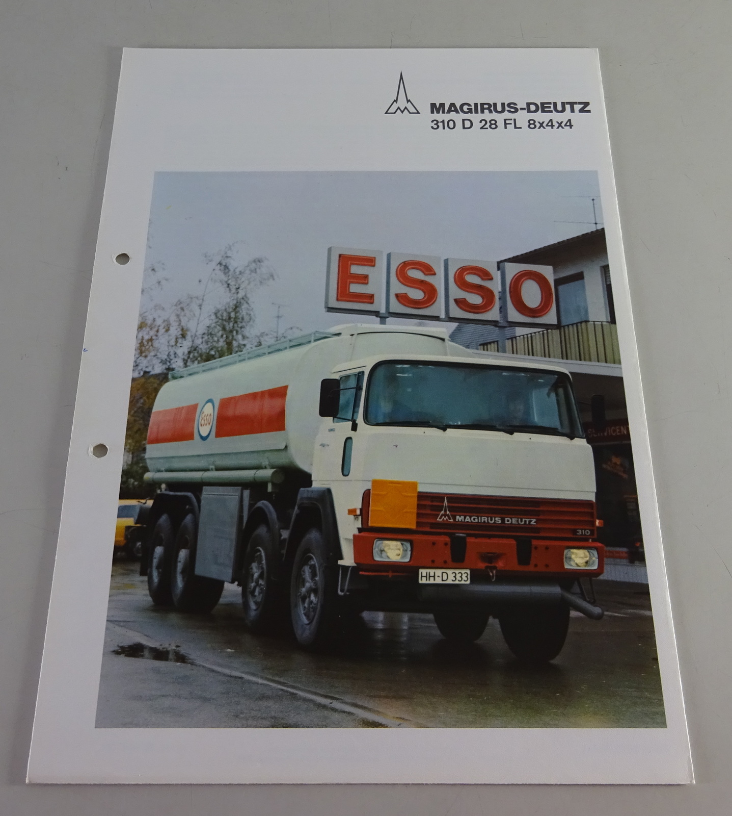 Faltprospekt Magirus-Deutz LKW 310 D 28 FL 8x4x4 Esso Tankwagen Stand 08/1975