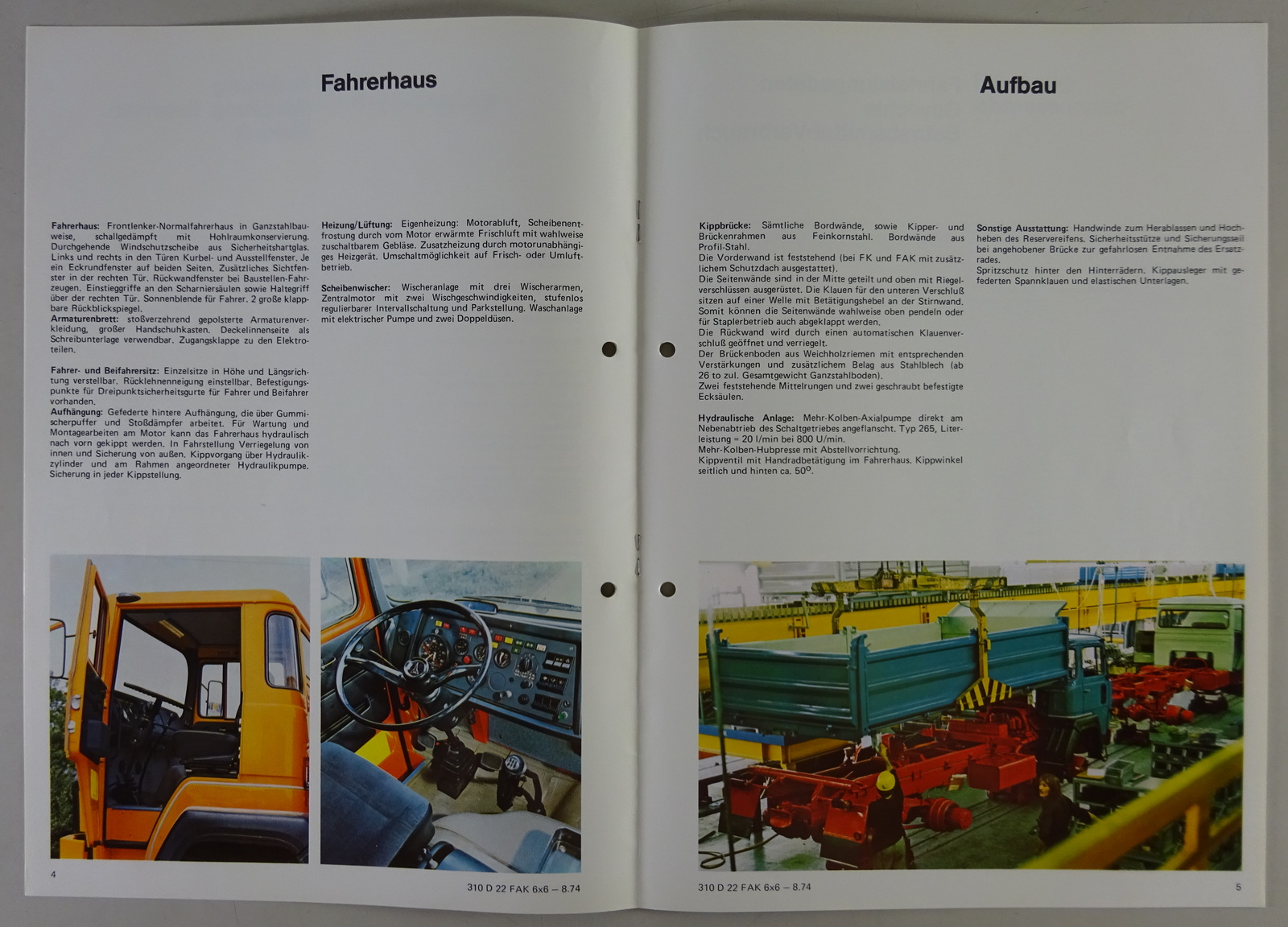 Prospekt Magirus-Deutz LKW 310 D 22 FAK 6x6 Frontlenker Allradkipper von 08/1974