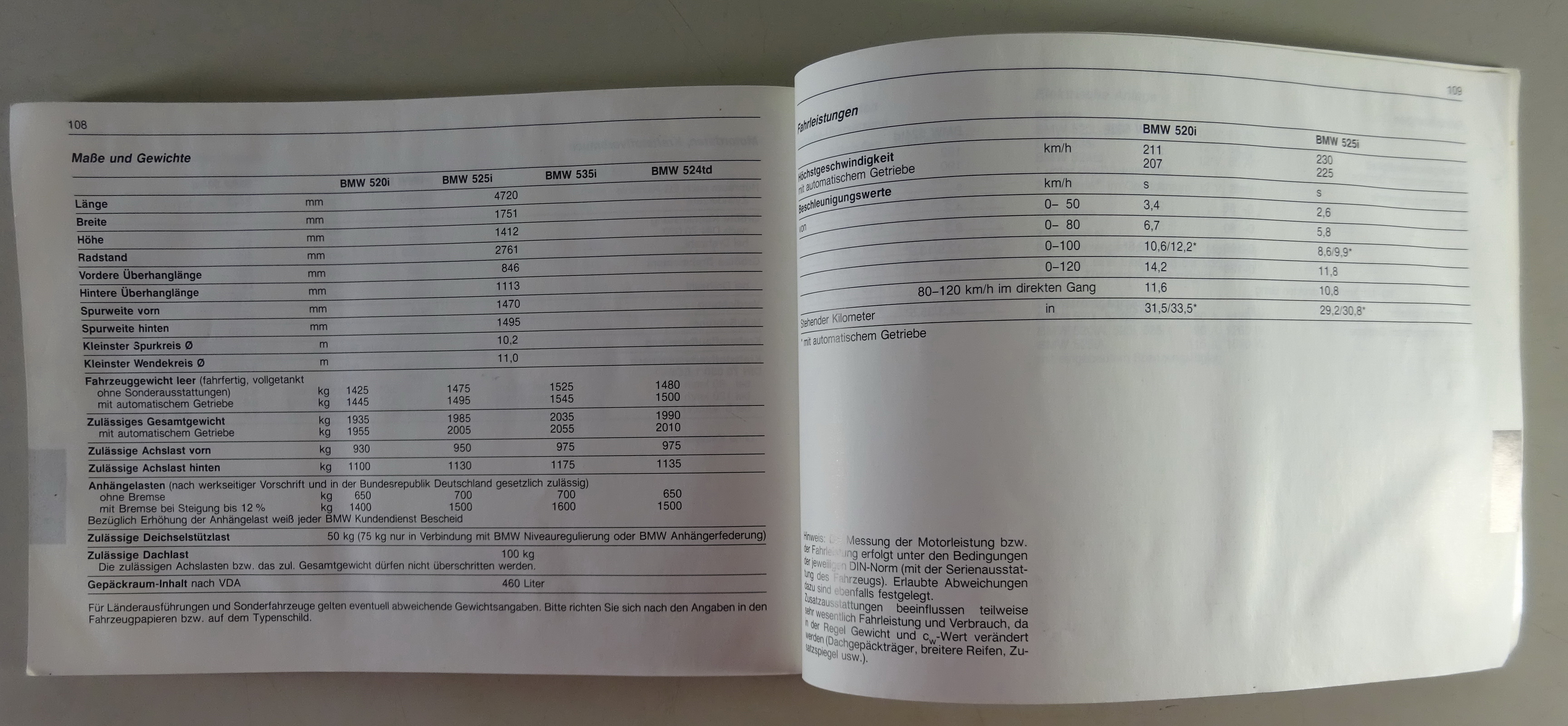 Modelle: 520i / 525i / 535i / 524 td
