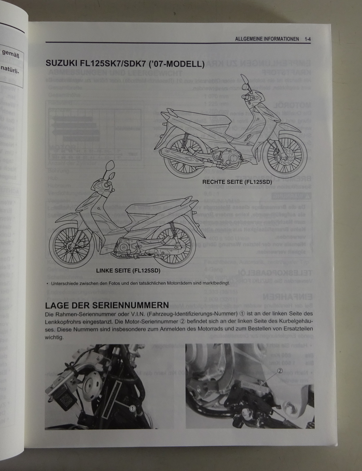 Werkstatthandbuch / Wartungsanleitung Suzuki FL 125 S/SD/SDW K8 Stand 06/2008