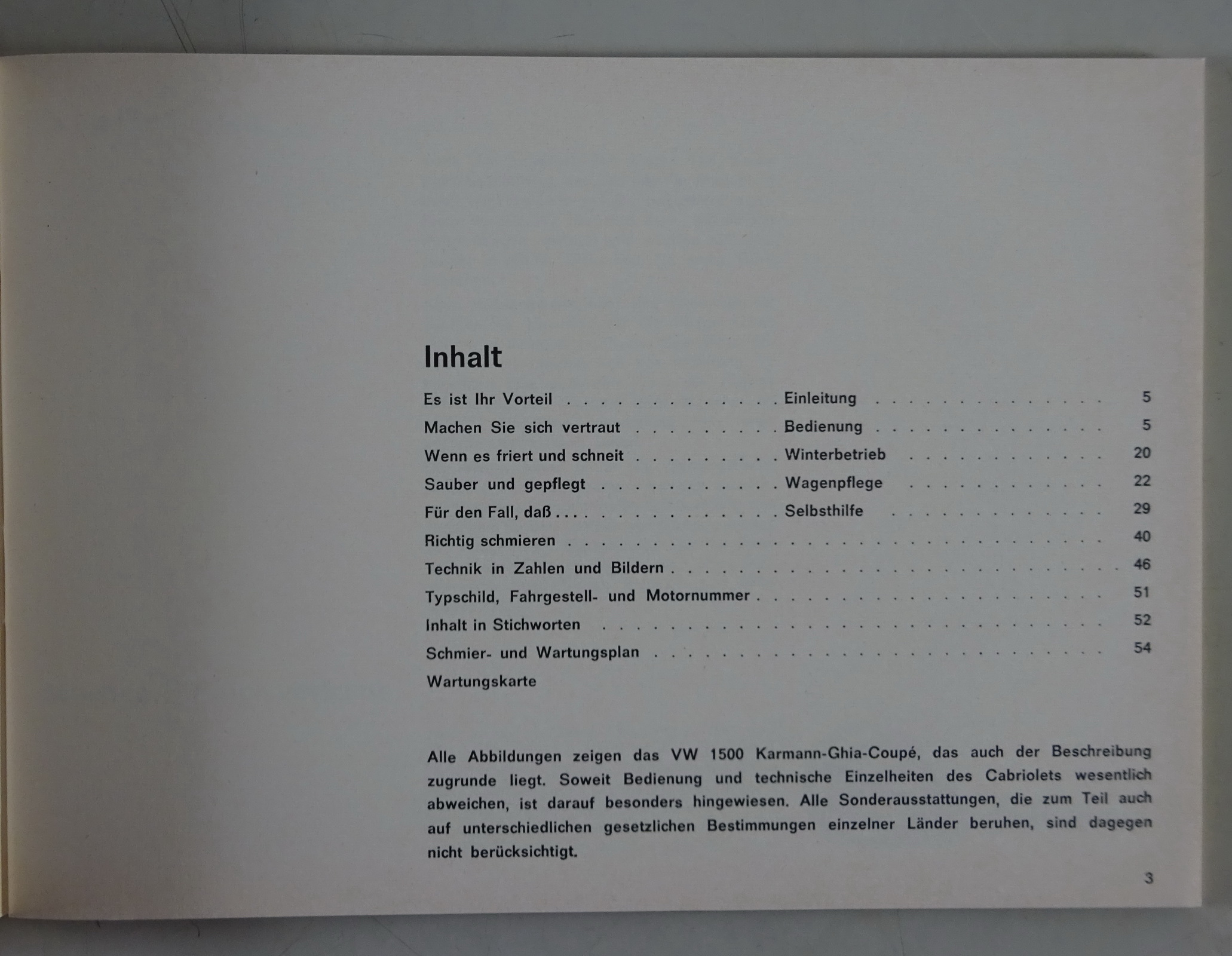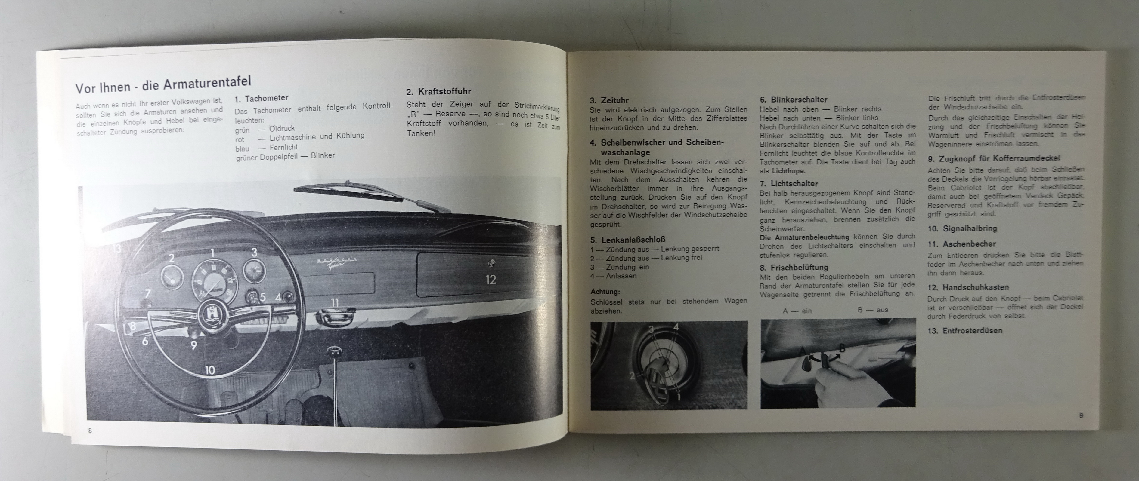 Bordmappe + Betriebsanleitung VW 1500 Karmann-Ghia Cabrio + Coupe Typ 14 - 1967