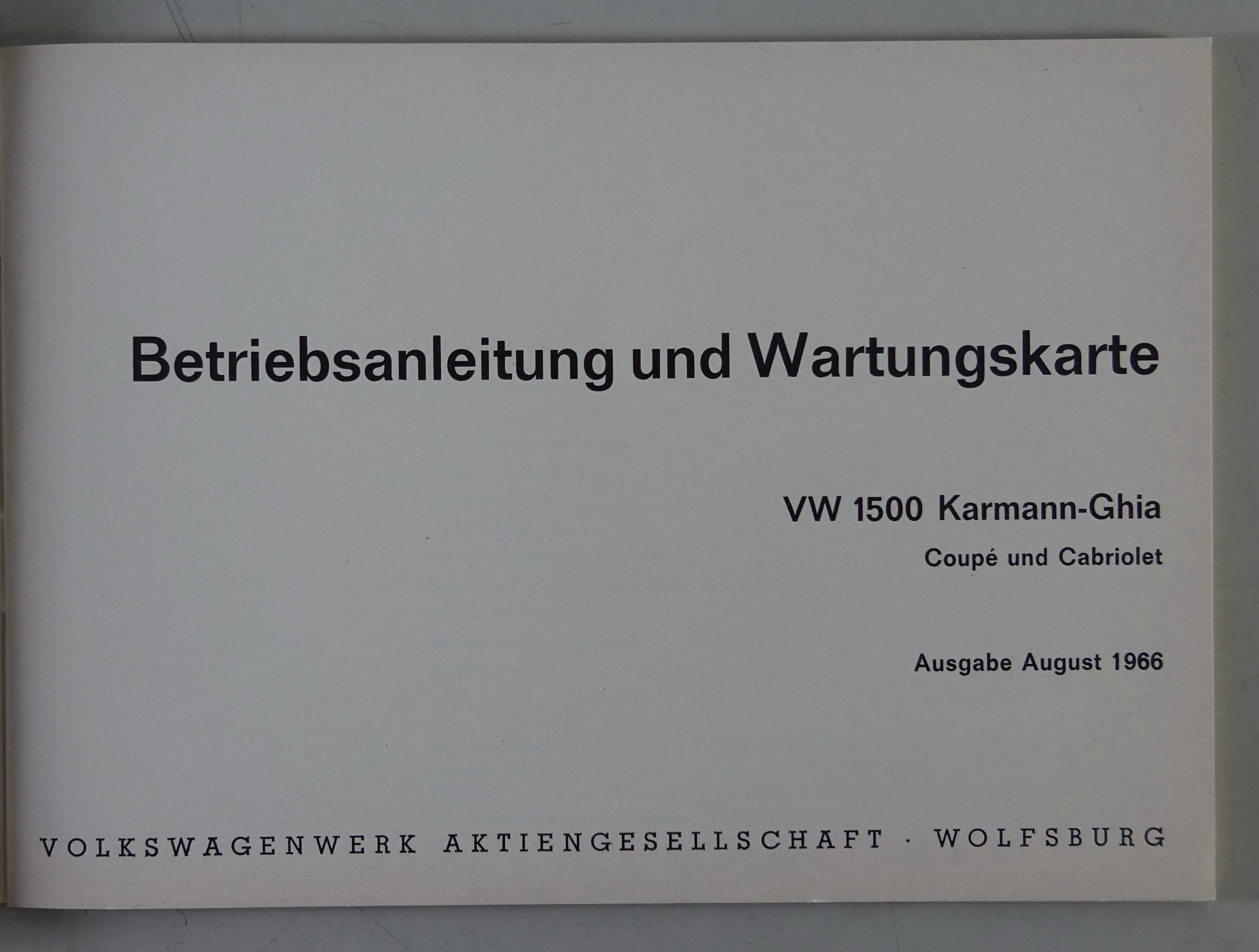 Produktinformationen "Bordmappe + Betriebsanleitung VW 1500 Karmann-Ghia Cabrio + Coupe Typ 14 - 1967"