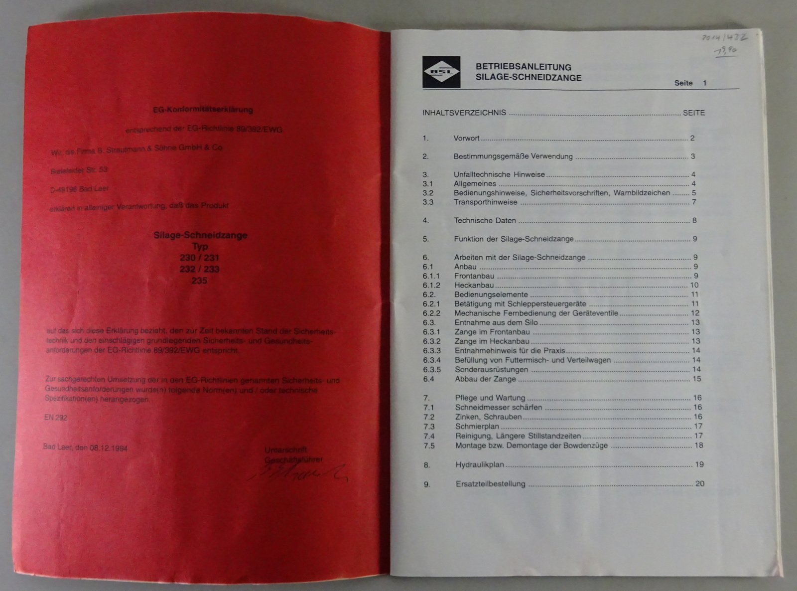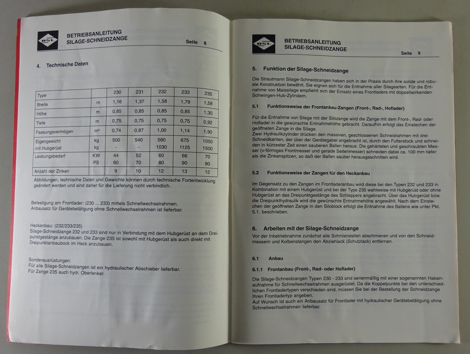 Betriebsanleitung BSL Strautmann Silage-Schneidzange Typ 230 - 235 Stand 12/1994