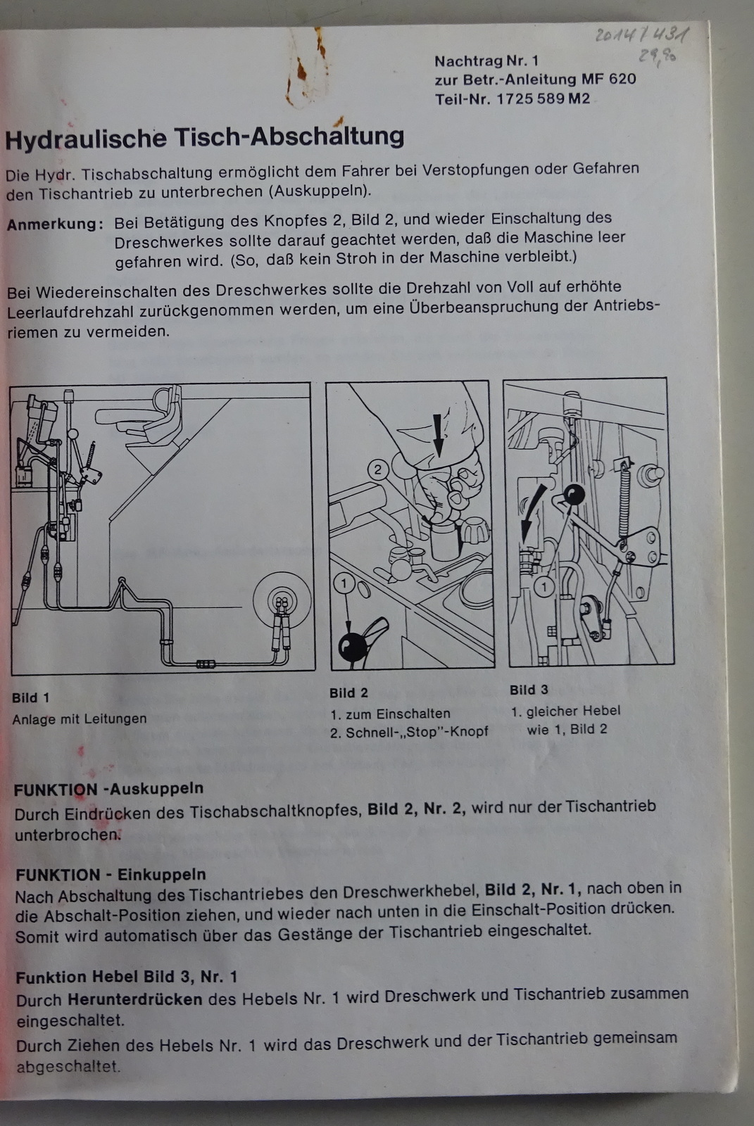 Produktinformationen "Betriebsanleitung / Handbuch Massey Ferguson Mähdrescher MF 620"