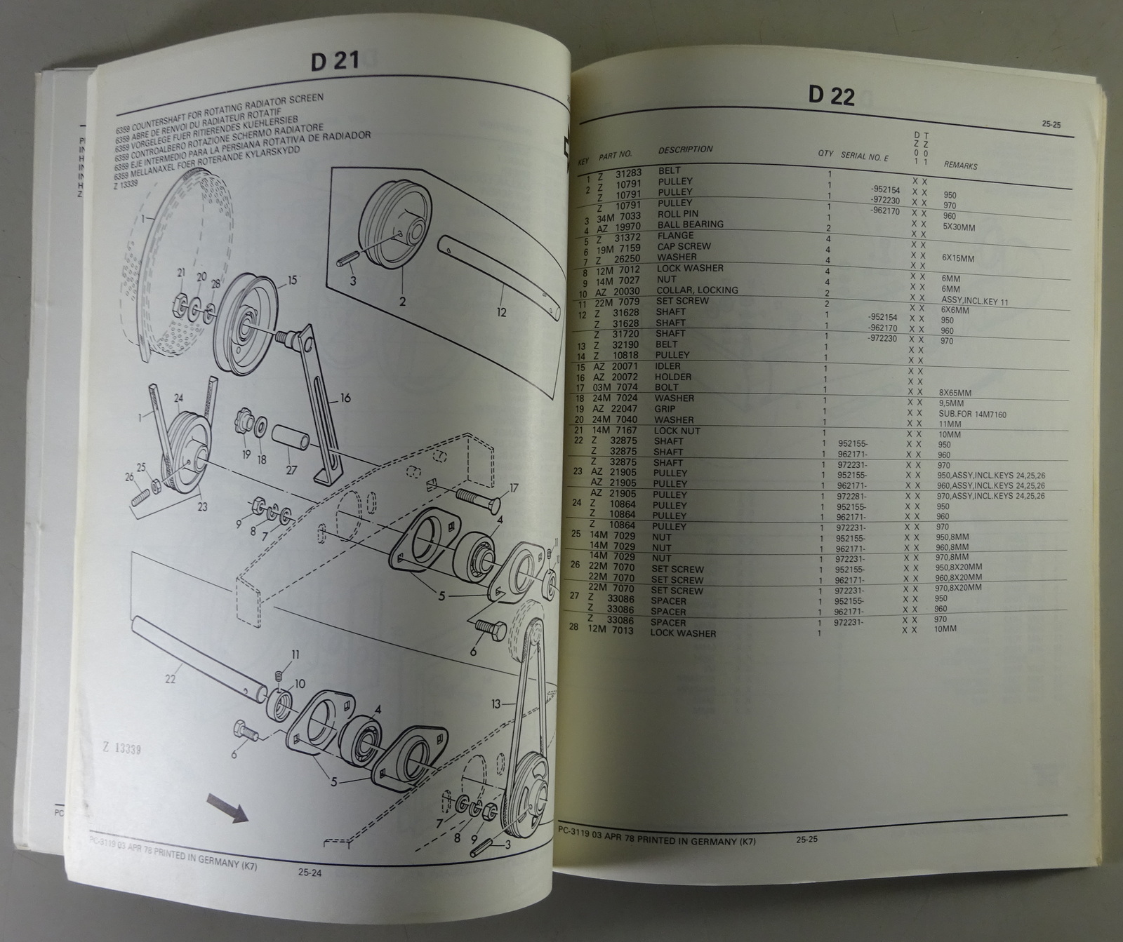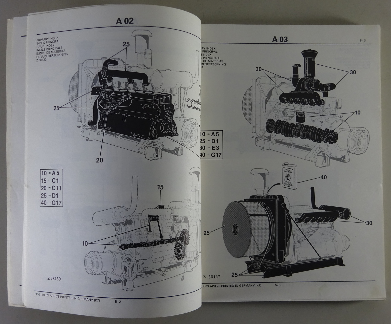 Teilekatalog / Parts list John Deere Motoren / Engines 6329 / 6359 Stand 04/1978