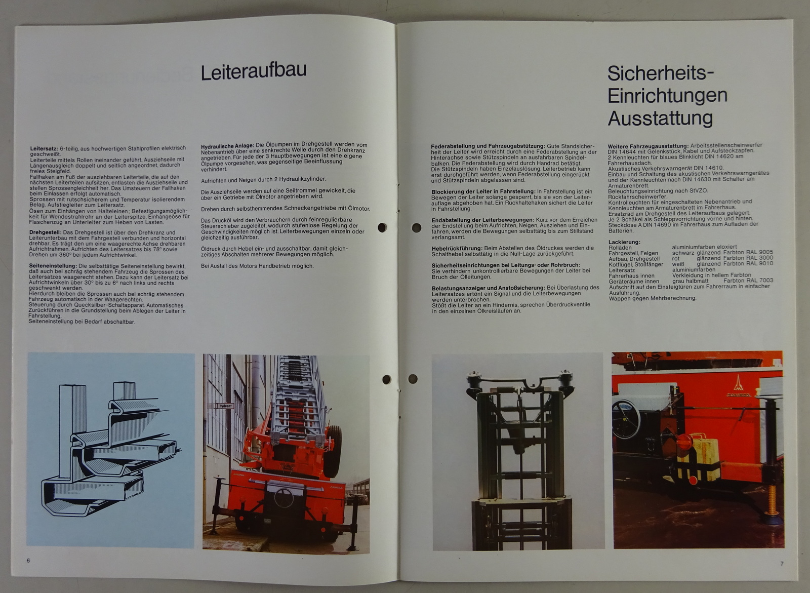Produktinformationen "Prospekt Magirus-Deutz LKW Feuerwehr Fahrzeug Drehleiter DL 44 Stand 04/1975"