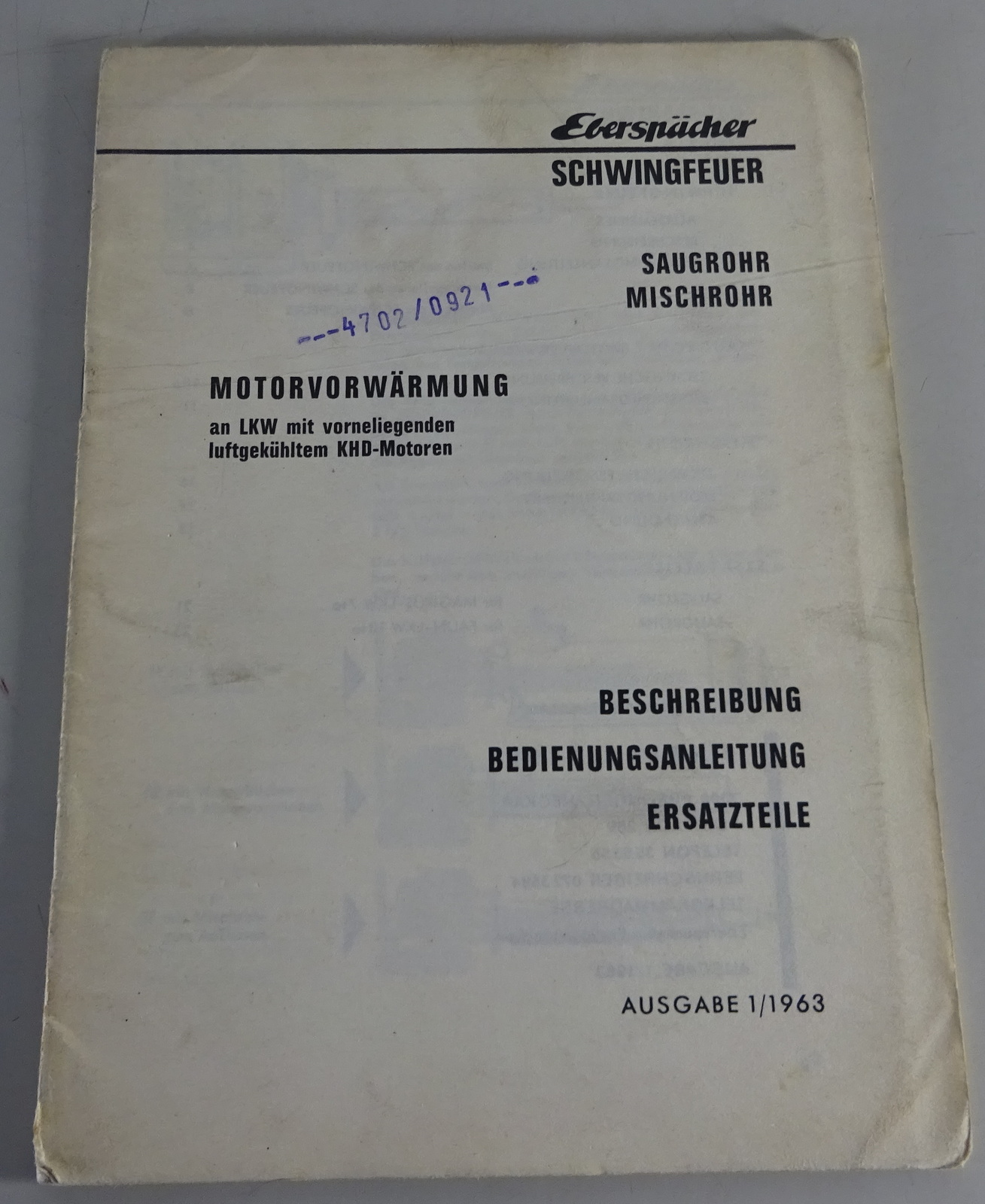 Produktinformationen "Betriebsanleitung + Teilekatalog Eberspächer Schwingfeuer für KHD 01/1963"