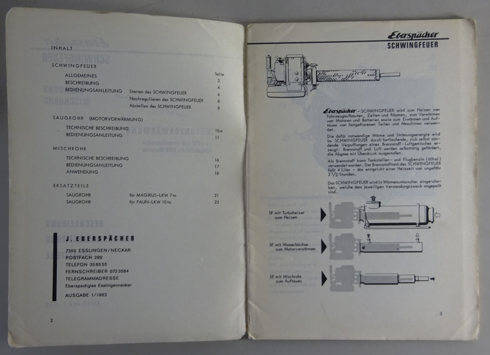 Betriebsanleitung + Teilekatalog Eberspächer Schwingfeuer für KHD 01/1963