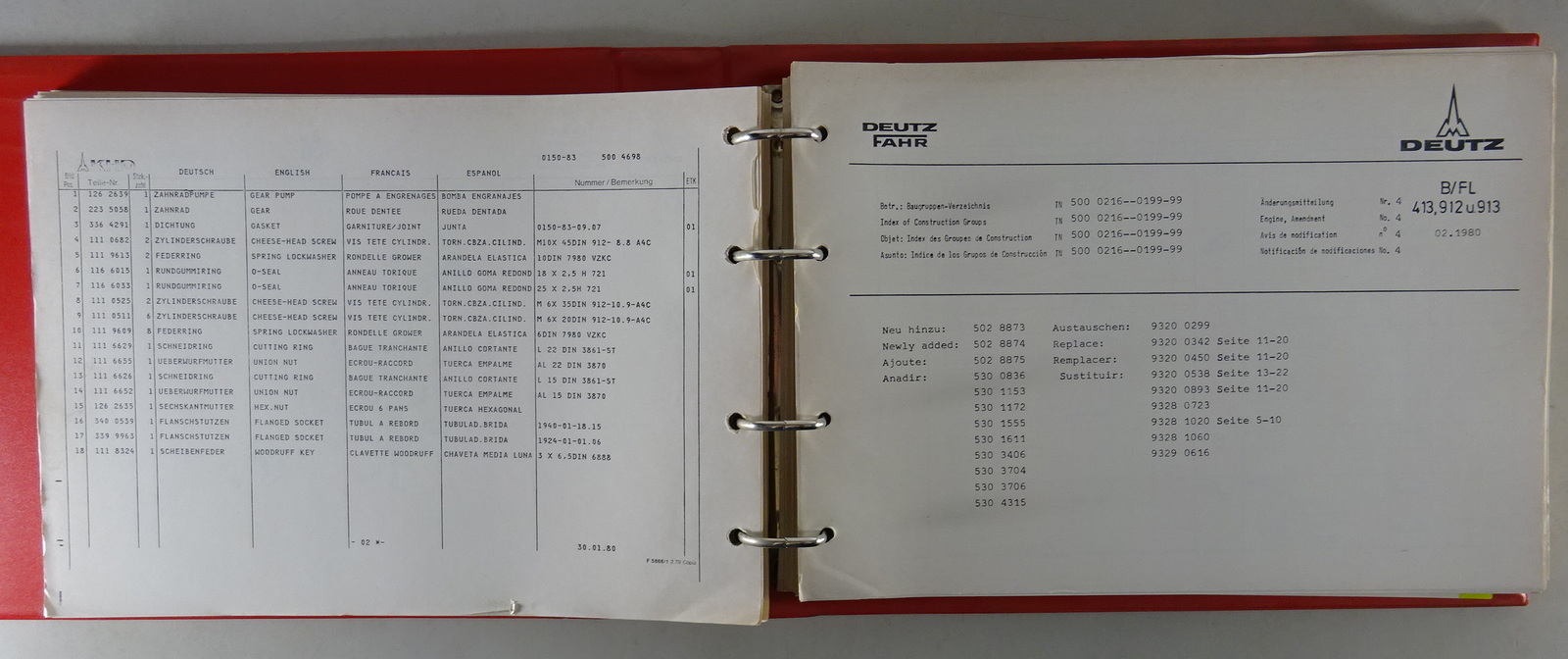 Teilekatalog / Parts List Deutz Motor B / FL 912 + 913 Stand 02/1980