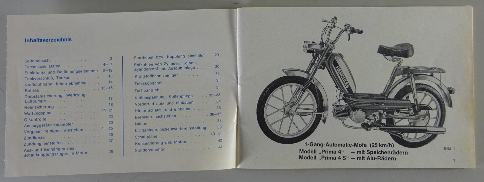 Produktinformationen "Bordmappe + Betriebsanleitung Hercules Mofa Prima 4/4 S, 5/5 S, Optima 3, HR 2"