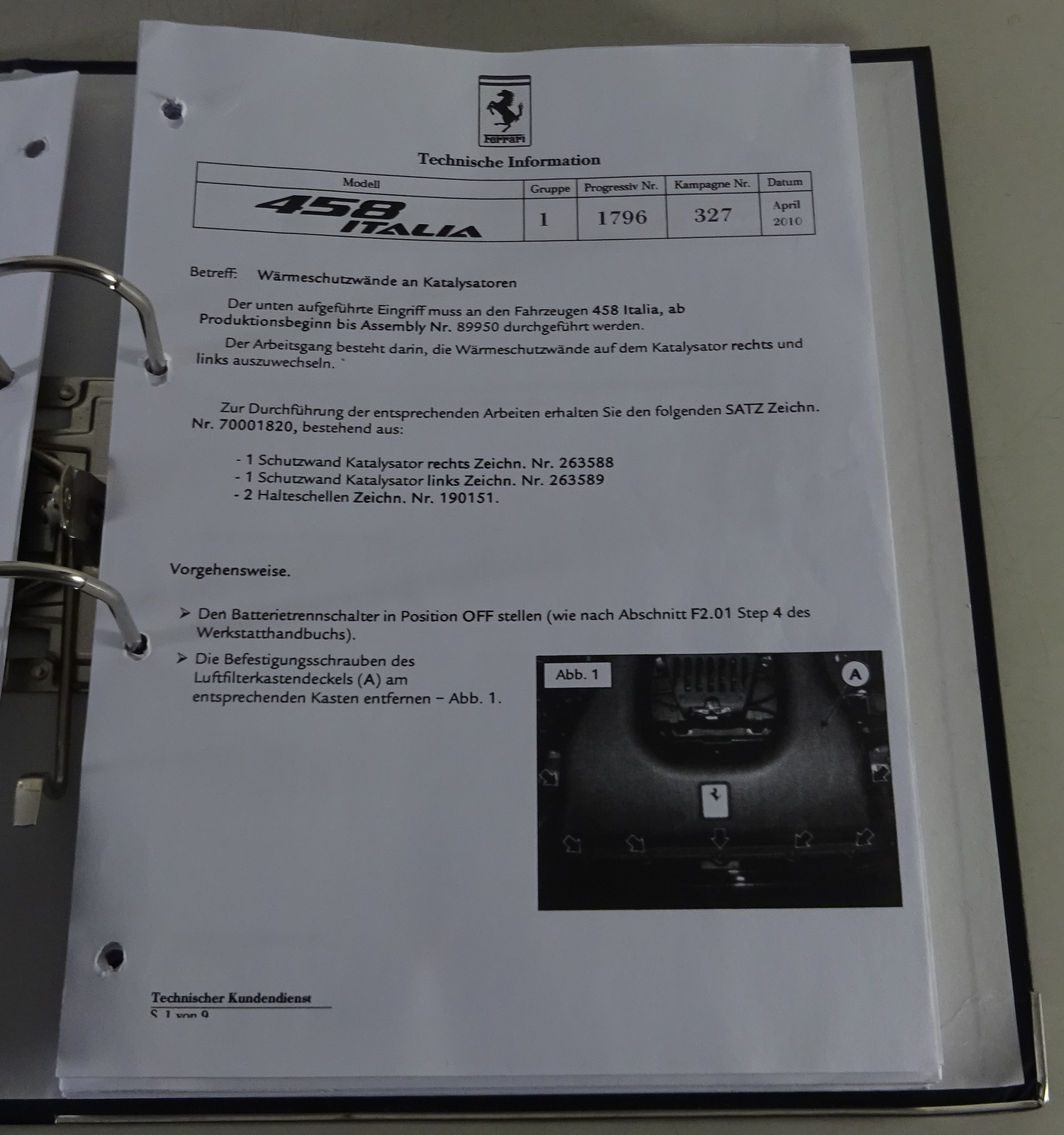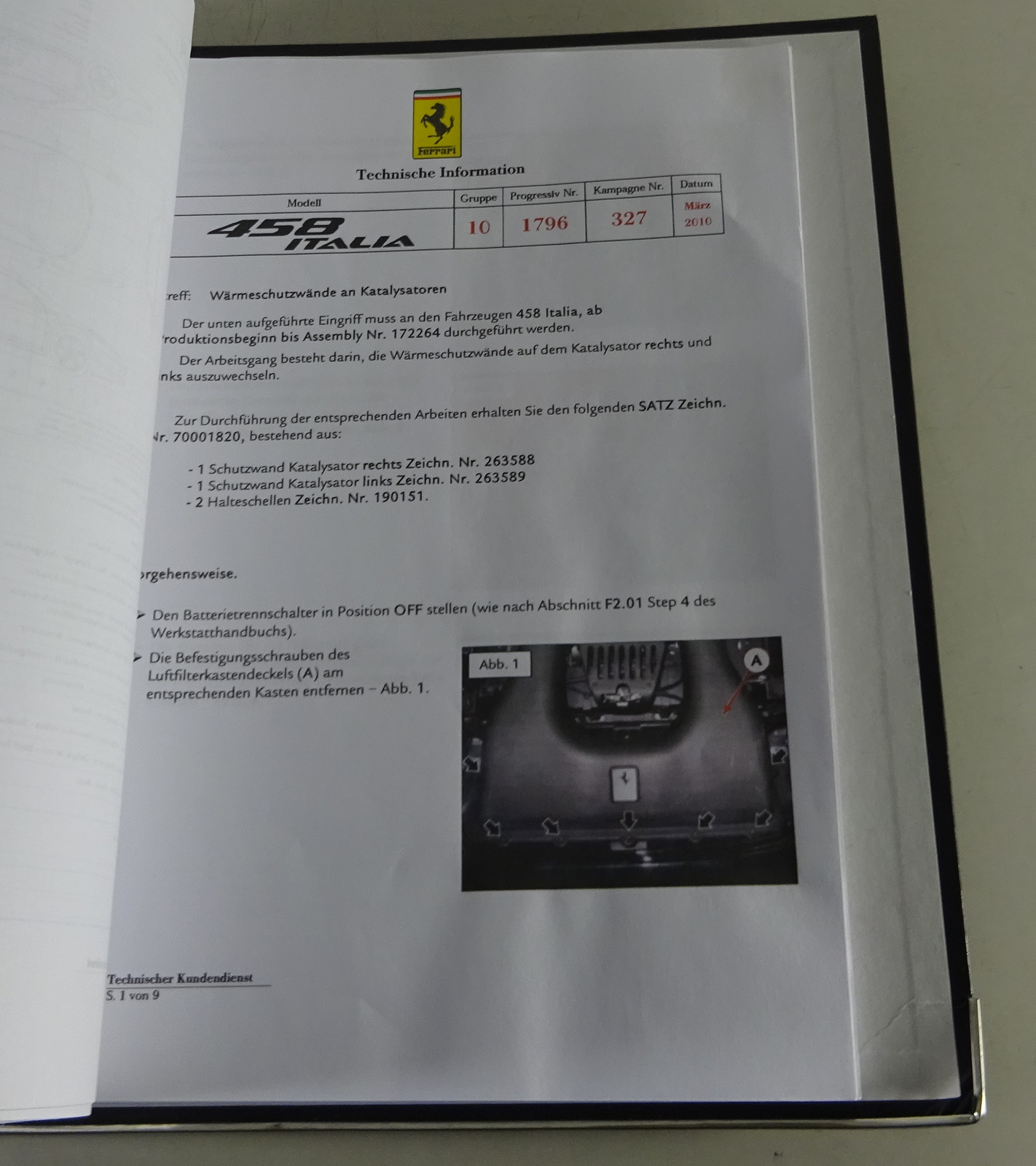 Technische Service Information / Schulungsunterlage Ferrari F 458 Italia von 2009 - 2010