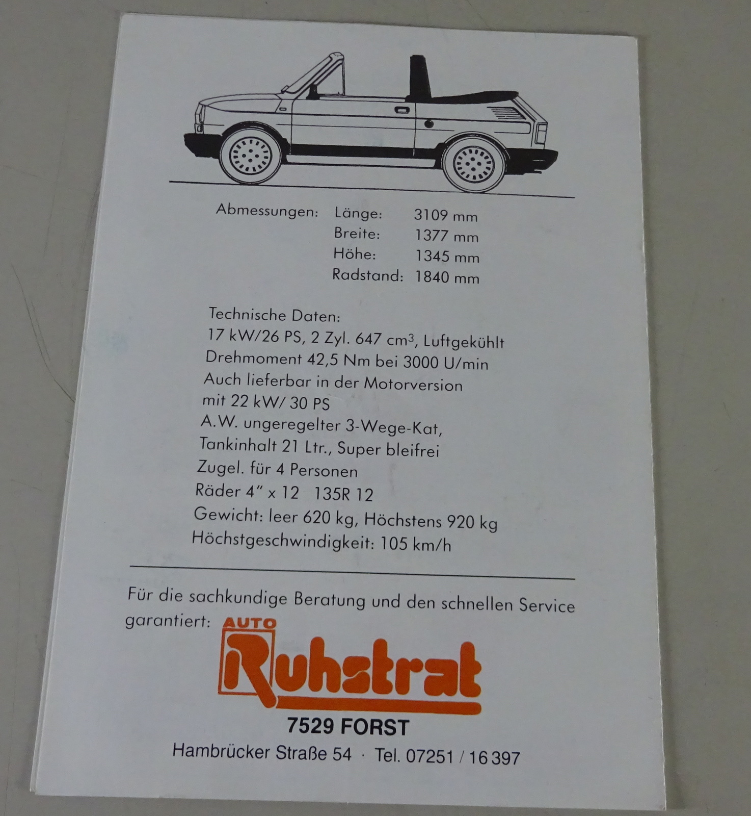 Prospekt / Prospektblatt Fiat Polski - Fiat 126p Cabrio Inhalt: Daten des... mehr