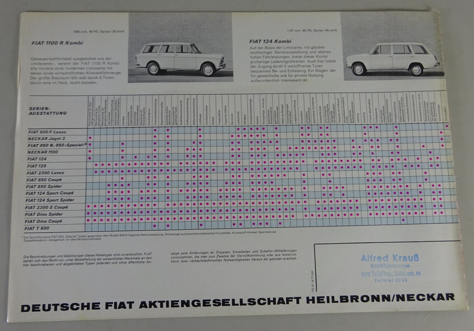 Fiat 500 F Luxus / NECKAR Jagst 2 / 850 N, 850 Spezial / NECKAR 1100 / 124 / 125 / 2300 Luxus / 850 Coupe|Spider / 124 Sport Coupe|Spider / 2300 S Coupe / Dino Spider|Coupe / T 600