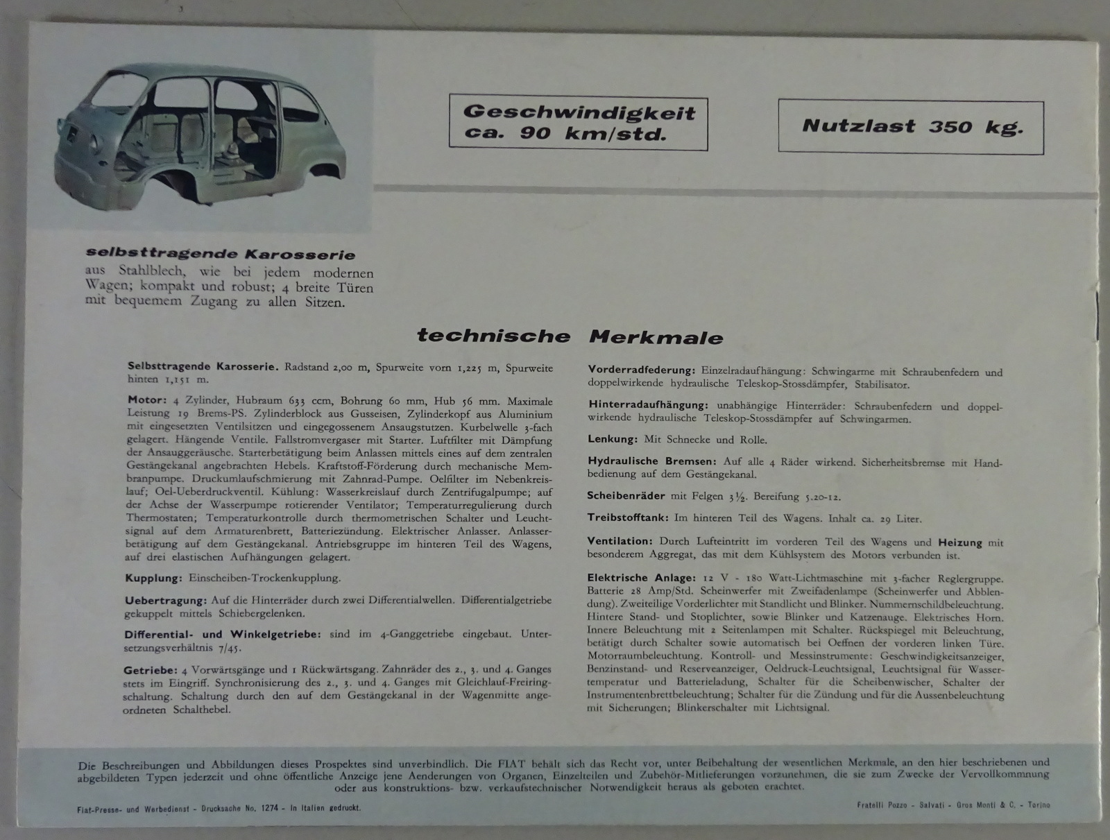 Prospekt / Prospektblatt | Fiat 600 Multipla Kombiwagen