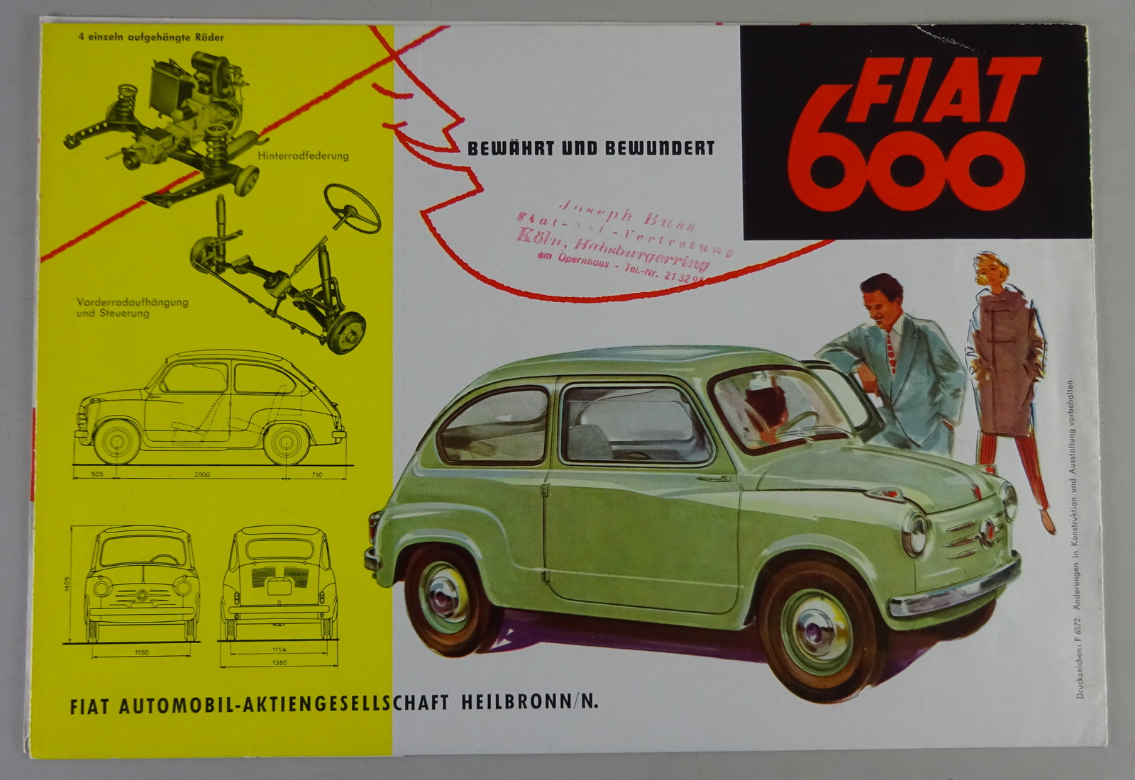 Prospekt / Prospektblatt | Fiat 600 mit Händlerstempel