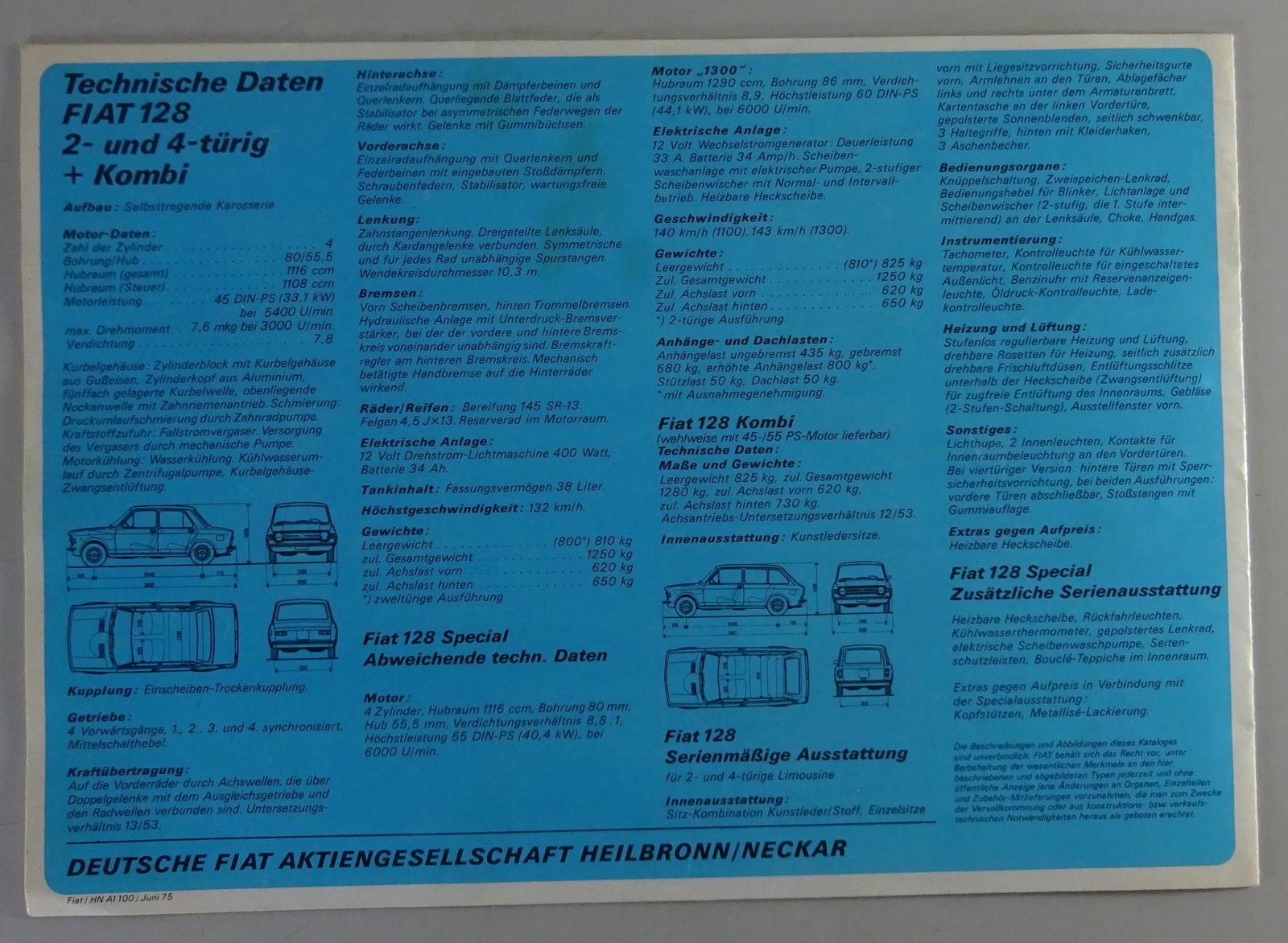 Produktinformationen "Prospekt Fiat 128 / 128 Special 2- & 4-türig + Kombi mit Händlerstempel 06/1975"
