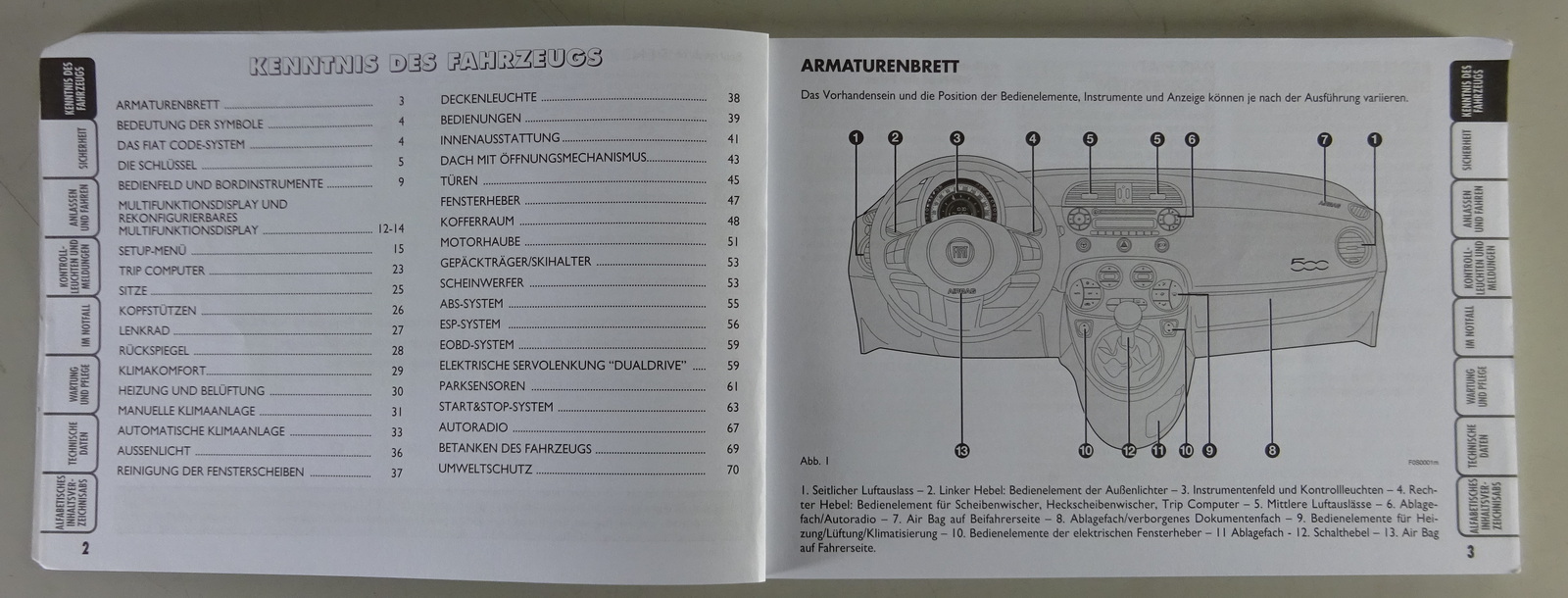Bordmappe mit Betriebsanleitung / Bedienungsanleitung Fiat 500 Inhalt:... mehr