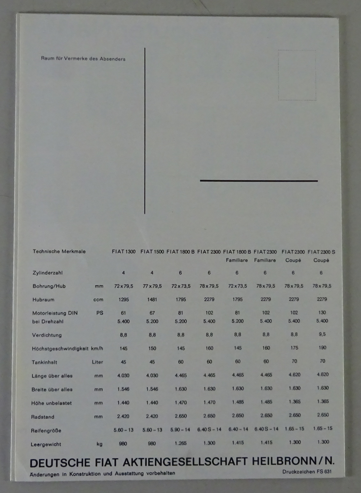 Prospekt / Programm | Fiat 500 / 600 / 1500 / 1600 / 1300 / 1800 / 2300 |