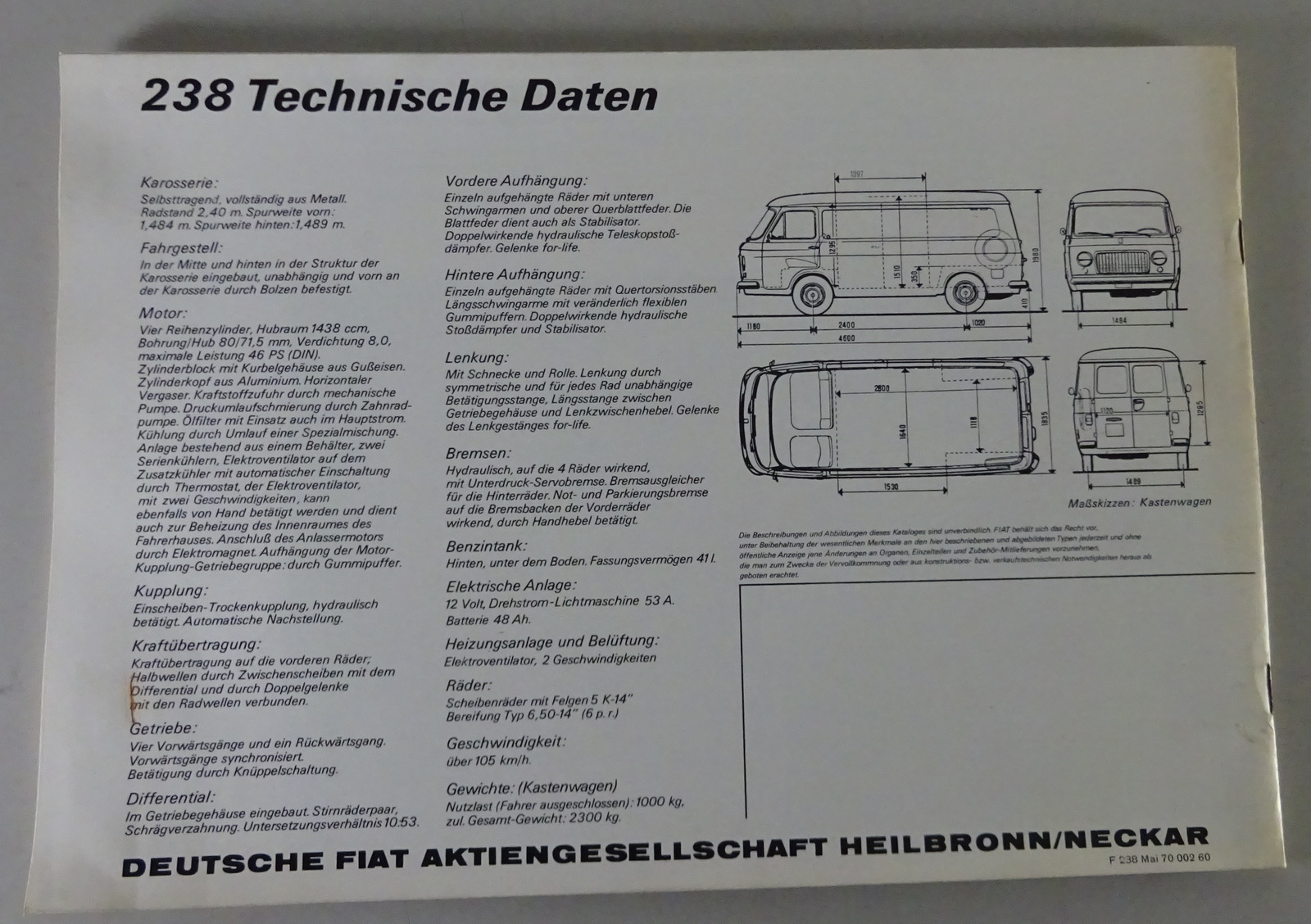 Produktinformationen "Prospekt / Broschüre Fiat 238 Stand 05/1970"