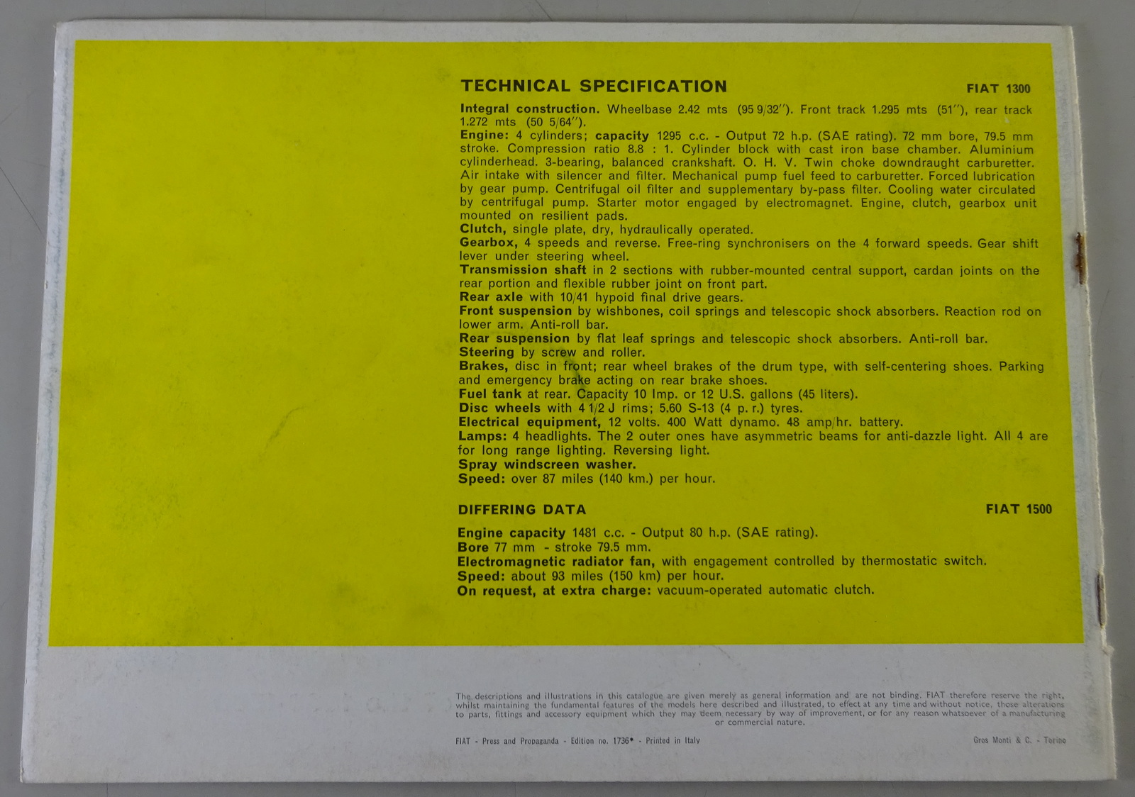 Prospekt / Brochure Fiat 1300 - Englisch